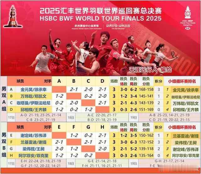 2025世界羽联杭州总决赛第三比赛日,小组赛阶段的三轮争夺全部决出了胜负,五个单