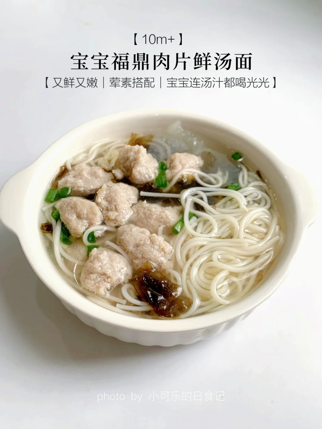 今天分享鲜嫩爽口的简单版福鼎肉片,开胃又鲜美,连汤汁都可以喝光光,再加点面条,轻松搞定宝宝一餐,全家都爱吃,一定要试试[偷笑R][偷笑R] - 🌟食材 猪肉120克 姜片少许 红薯淀粉35克 冬瓜 . 🌟做法 1⃣️猪肉、姜片、淀粉全部放入辅食机搅打细腻 2⃣️锅里刷油,放入冬瓜和虾片翻炒,加入适量清水煮开 3⃣️用勺子舀入肉泥,焖煮8分钟,再加入面条煮熟,出锅前加入紫菜和调味料即可 - 🌈肉的大小根据宝宝咀嚼能力处理 🌈大人吃的话,可以碗里加入酱油,辣子油加入肉片面条拌均匀即可