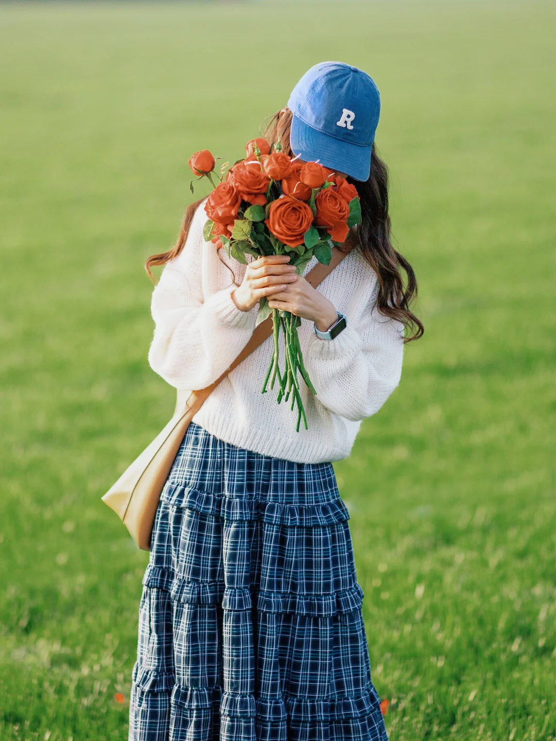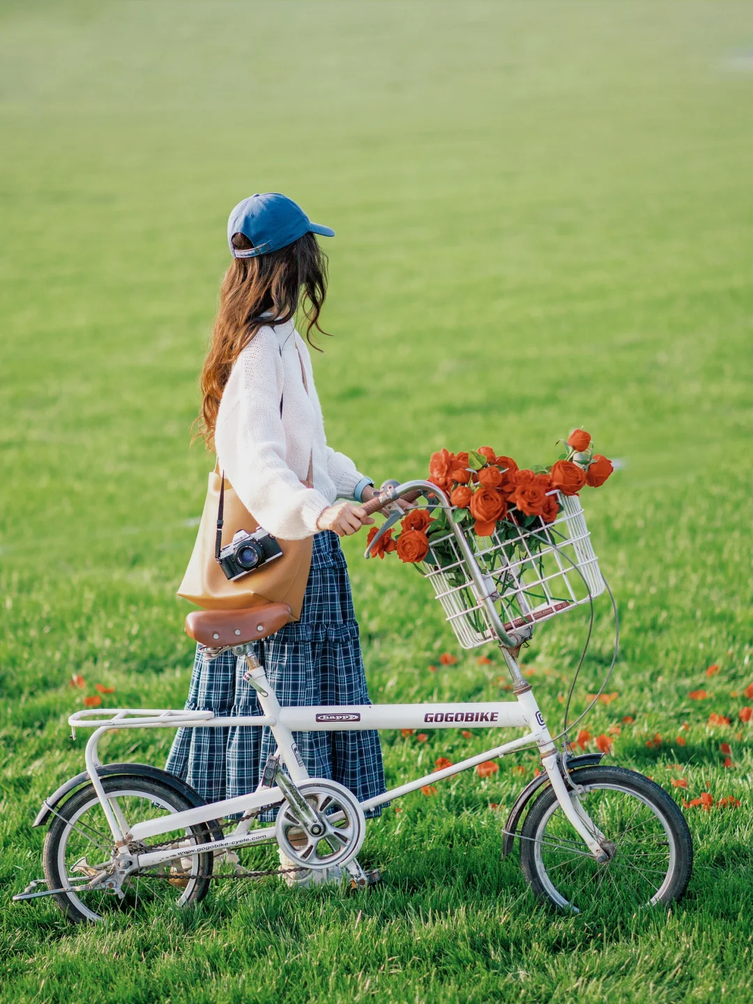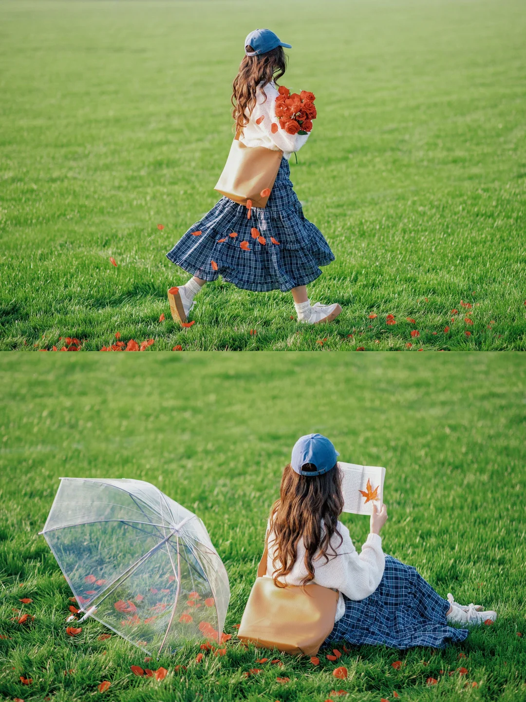 红色玫瑰花和绿色的草坪拍照太搭啦