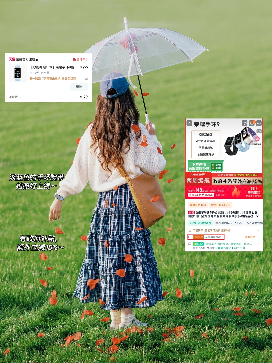 除了拍摄花花,秋天的一片落叶也是很好的拍照道具,例如拍摄落叶近景时,特意带了荣耀手环9,淡蓝色的腕带和秋天的色彩好搭,有了手环的加入,画面细节会更丰富生动啦。现在天猫双11,3C数码产品的狂欢已经拉开帷幕啦,上淘宝天猫🔍“数码换新补贴”,即可进入补贴会场,领取补贴资格~电脑/手机/平板/影音/智能设备等,不仅有官方立减优惠,最低15%起,更有3C数码换新补贴最高至2000元的诱人羊毛,还能与88VIP的大额优惠券叠加使用,简直是多重惊喜呀~这波羊毛我先薅啦,除了这次拍照带的荣耀手环,之前预算不够的电脑也趁活动拿下啦~