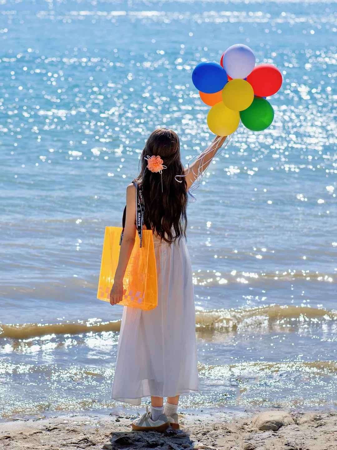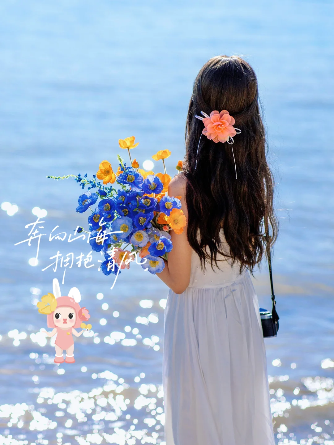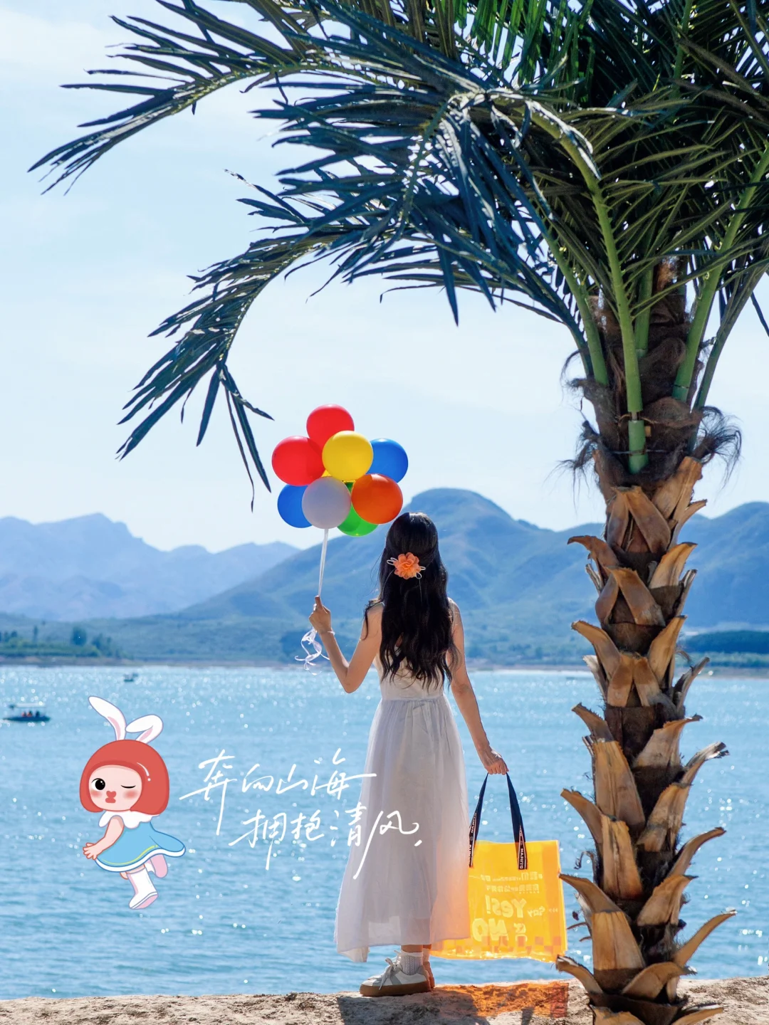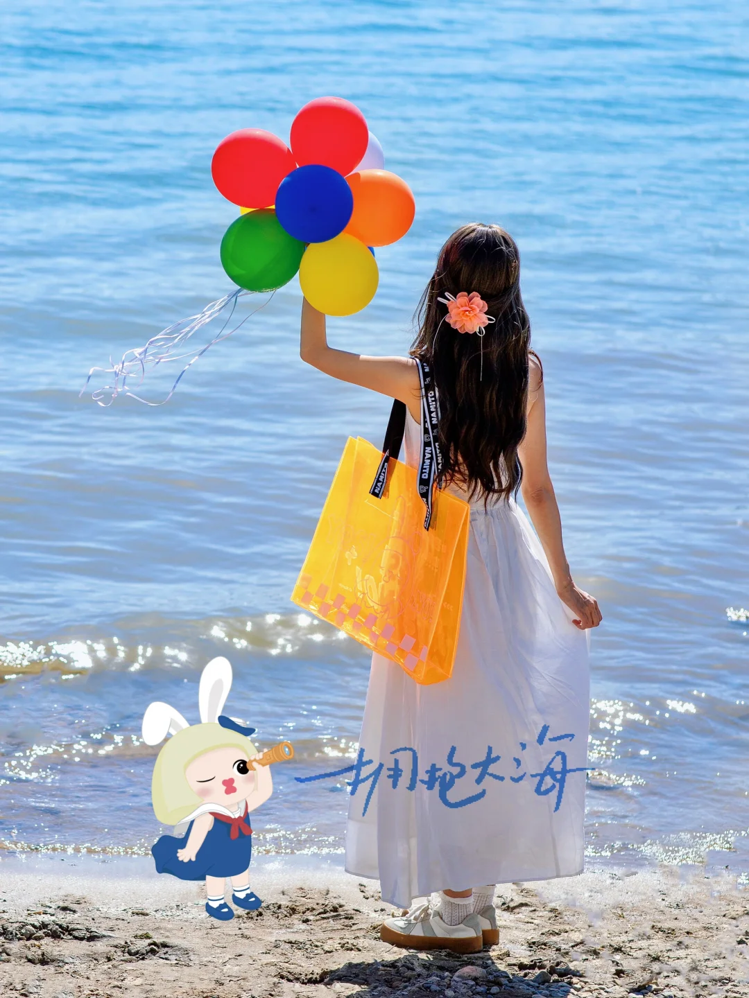 假期湖边到处人山人海,我们依然可以找到一小片角落,通过以上小技巧和调色,拍出氛围感照片,不过像湖边这种场景背景比较单调,拍出的照片总觉得空空的,这时候美图秀秀里的奈美兔贴纸就登场啦,添加了奈美兔贴纸,原本空荡荡的画面立马变得生动活泼起来,充满童趣,以后旅行时拍出的“废片”,先别着急删啦,试着用美图秀秀的奈美兔主题贴纸,只需3步就能让废片秒变氛围感爆棚的大片,而且我这次出游还搭配了奈美兔显眼包,色彩鲜艳的橙色瞬间点亮整体穿搭啦,让原本略显单调的白色的连衣裙,瞬间丰富起来~