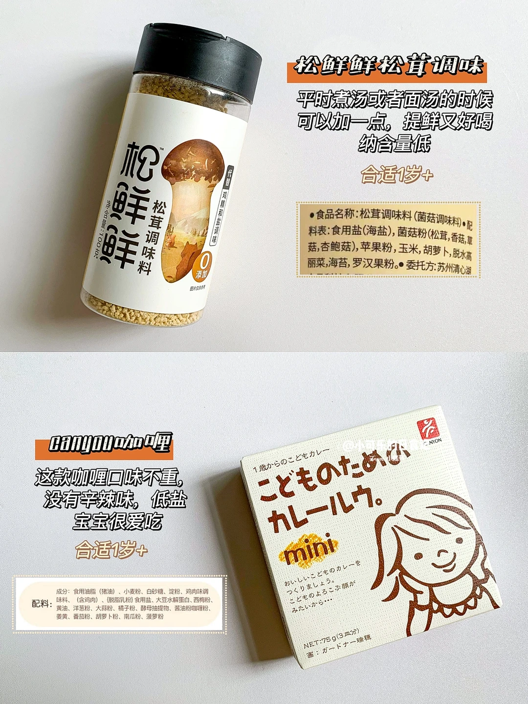 宝宝没胃口,适当加点调料,宝宝更爱吃。很多妈妈问用什么调味,今天整理了平时自用款,而且有在我分享的食谱中出现过,一直回购的好物,大家有需要的话可以参考,希望对你们有用‼️