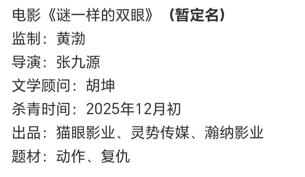 黄渤监制电影《谜一样的双眼》故事梗概➕人物小传🈶倪妮、陈飞宇、李乃文、任达华、马思超、黄子琪、刘敏涛、刘骏