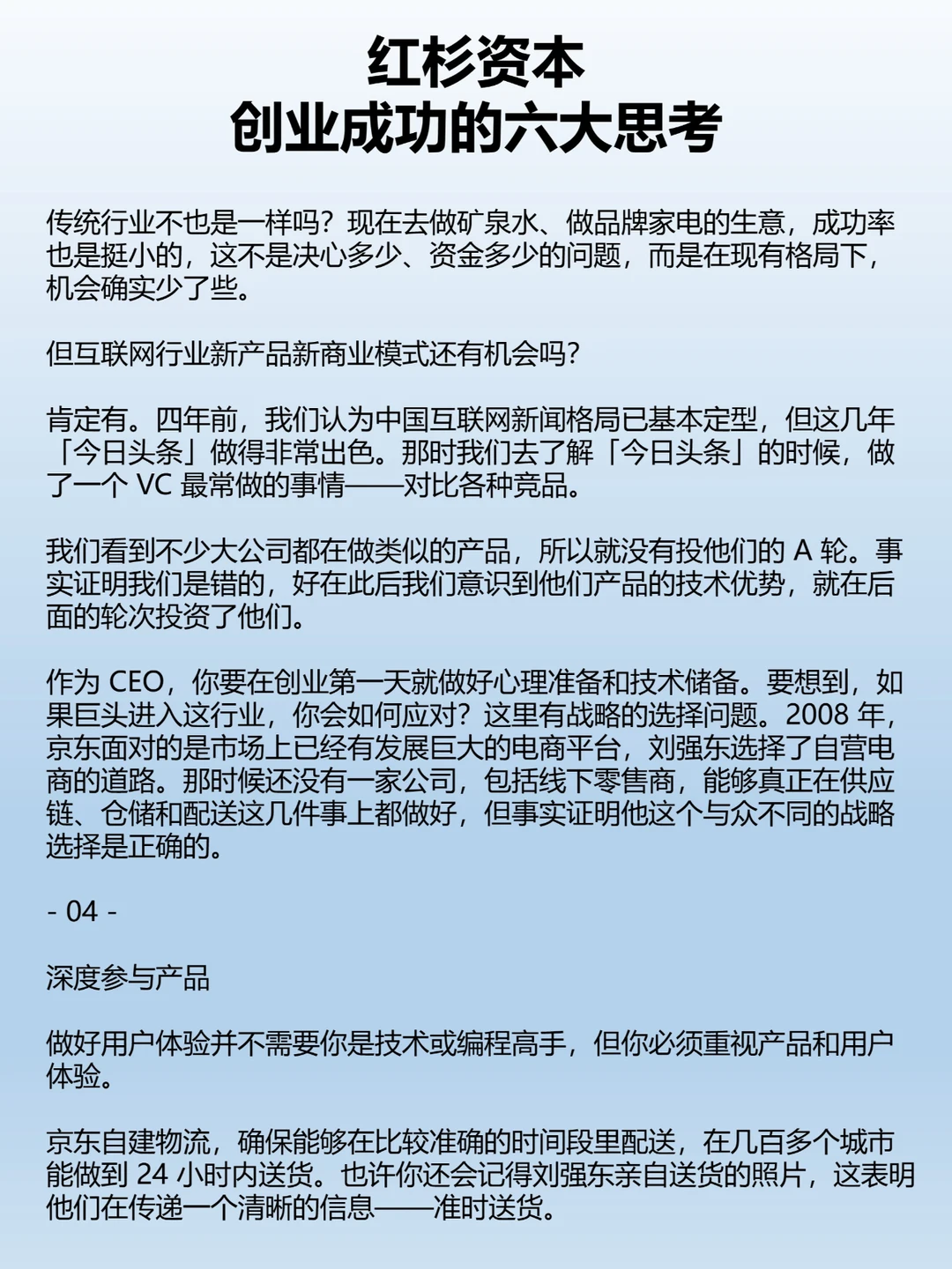 沈南鹏:其实 CEO 不是那么好当的,定战略、重产品、带团队、算好账,一个都不能少。 互联网行业在今天和在 1999 年的时候有着根本性的差别。如今,BAT、京东以及小米等大公司已经覆盖了相当部分的市场机会。但我们不要去抱怨,这不是垄断,是商业发展中每个行业都必然经历的过程。 传统行业不也是一样吗?现在去做矿泉水、做品牌家电的生意,成功率也是挺小的,这不是决心多少、资金多少的问题,而是在现有格局下,机会确实少了些。 但互联网行业新产品新商业模式还有机会吗? 肯定有。四年前,我们认为中国互联网新闻格局已基本定型,但这几年「今日头条」做得非常出色。那时我们去了解「今日头条」的时候,做了一个 VC 最常做的事情——对比各种竞品。 我们看到不少大公司都在做类似的产品,所以就没有投他们的 A 轮。事实证明我们是错的,好在此后我们意识到他们产品的技术优势,就在后面的轮次投资了他们。 作为 CEO,你要在创业第一天就做好心理准备和技术储备。要想到,如果巨头进入这行业,你会如何应对?这里有战略的选择问题。2008 年,京东面对的是市场上已经有发展巨大的电商平台,刘强东选择了自营电商的道路。那时候还没有一家公司,包括线下零售商,能够真正在供应链、仓储和配送这几件事上都做好,但事实证明他这个与众不同的战略选择是正确的。