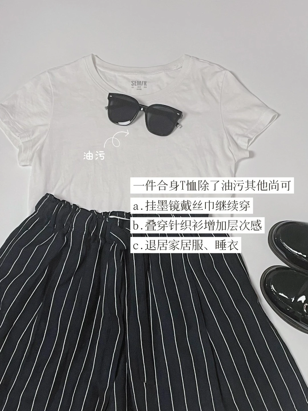 -Plan B:旧T领挂墨镜或戴丝巾可挡住油渍