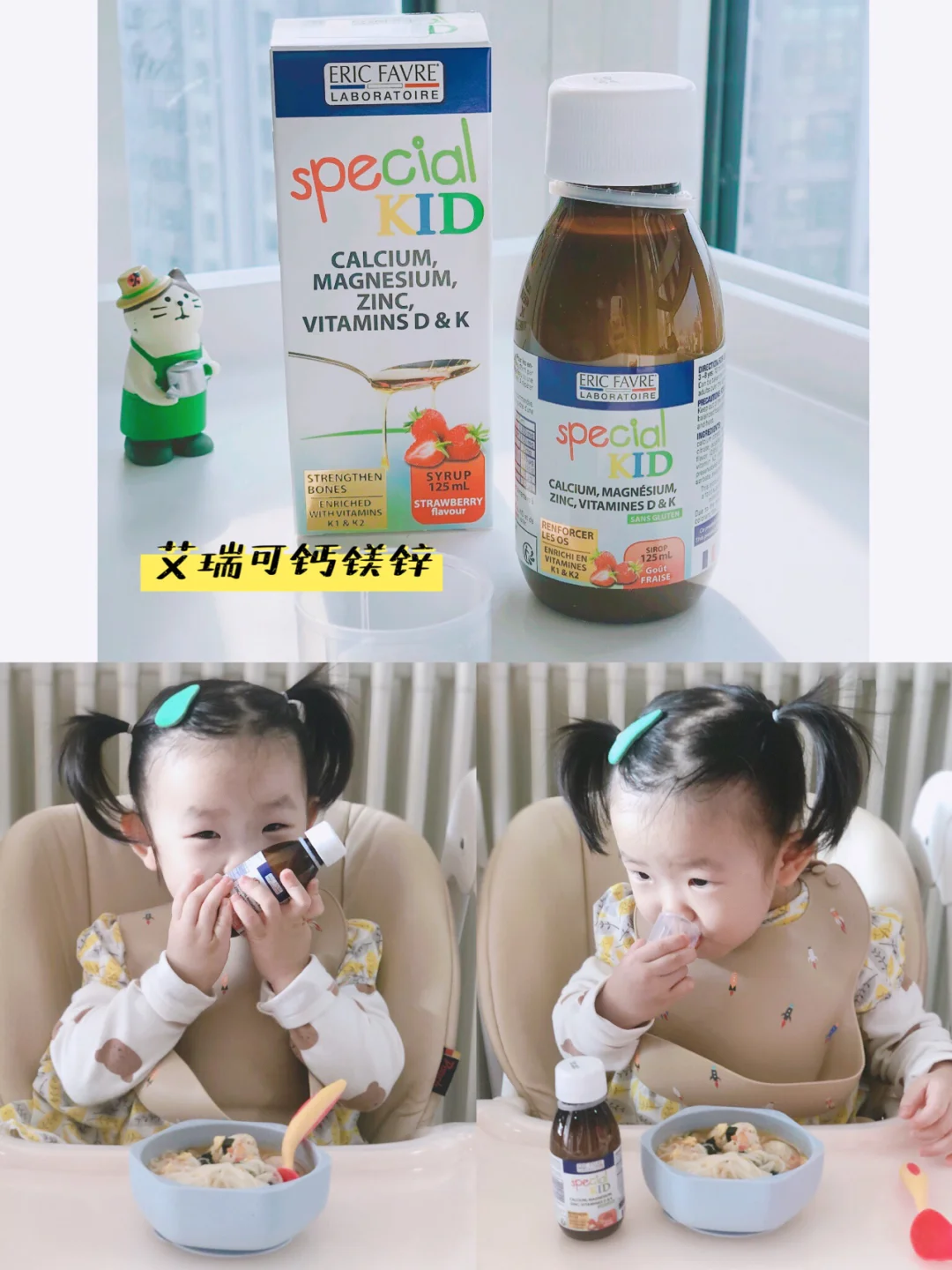 ❤️除了食补外,我们还搭配了钙镁锌,这样的效果会更佳,也是看到年糕妈妈还有儿科医生蒋竞雄博士有介绍,它是含有D3、K1、K2促进骨骼发育的纯植物配方,小朋友喝起来完全不抗拒,每天5毫升感觉还不够喝[偷笑R]她们实在太喜欢这个酸甜的草莓味了。