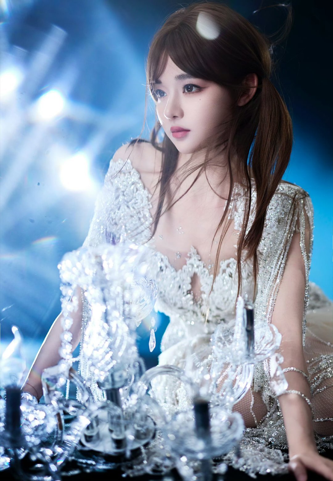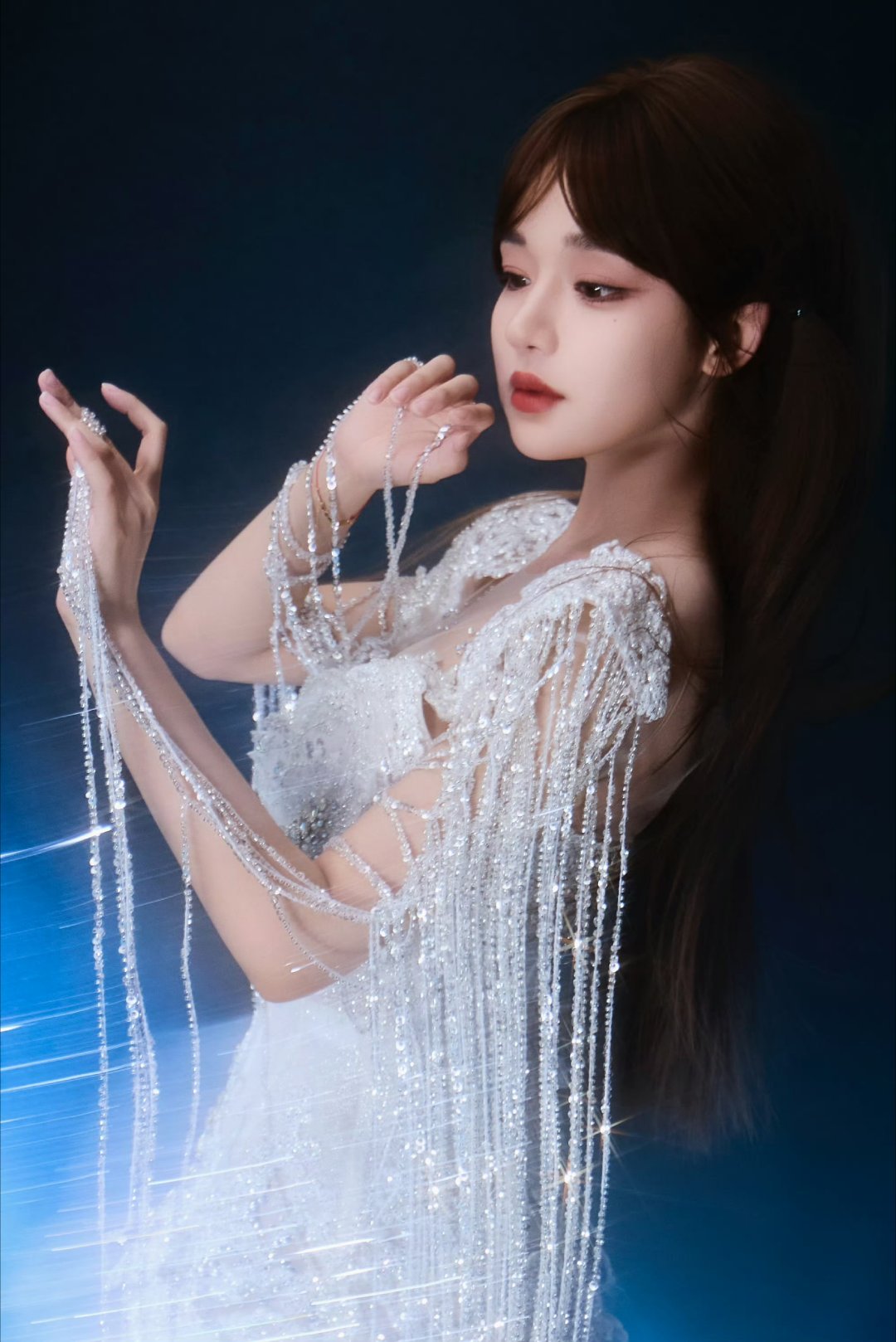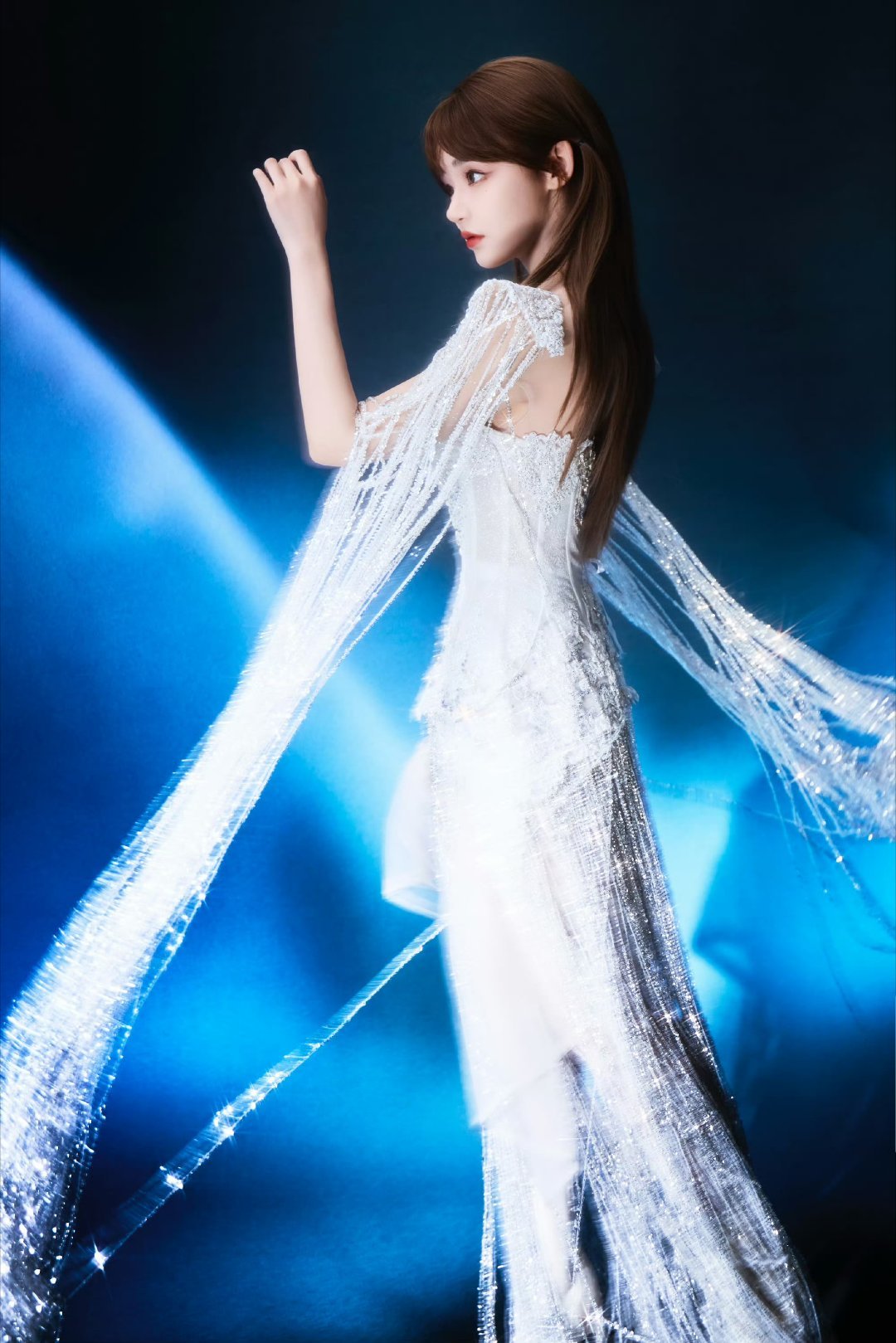 黄霄雲居然把水晶穿在身上黄霄雲这波“把水晶穿在身上”的操作简直是将梦幻具象化!数千颗水晶缀满裙身,随着舞台动作与呼吸起伏闪烁,宛如把银河碎片揉进衣摆,意大利肌肤纱的基底让水晶光泽更显清透,蓝白渐变或烟紫主调的设计,又恰似深海粼光与霓虹幻境交织,每一步都踩出璀璨轨迹。清冷的舞台光影下,水晶折射出的细碎光芒与她的高音爆发力完美呼应,既有高定礼服的精致奢感,又带着音乐舞台的灵动张力,仿佛从星河或童话中走出的缪斯,把“水晶造型”穿出了专属的视听双重惊艳感。
