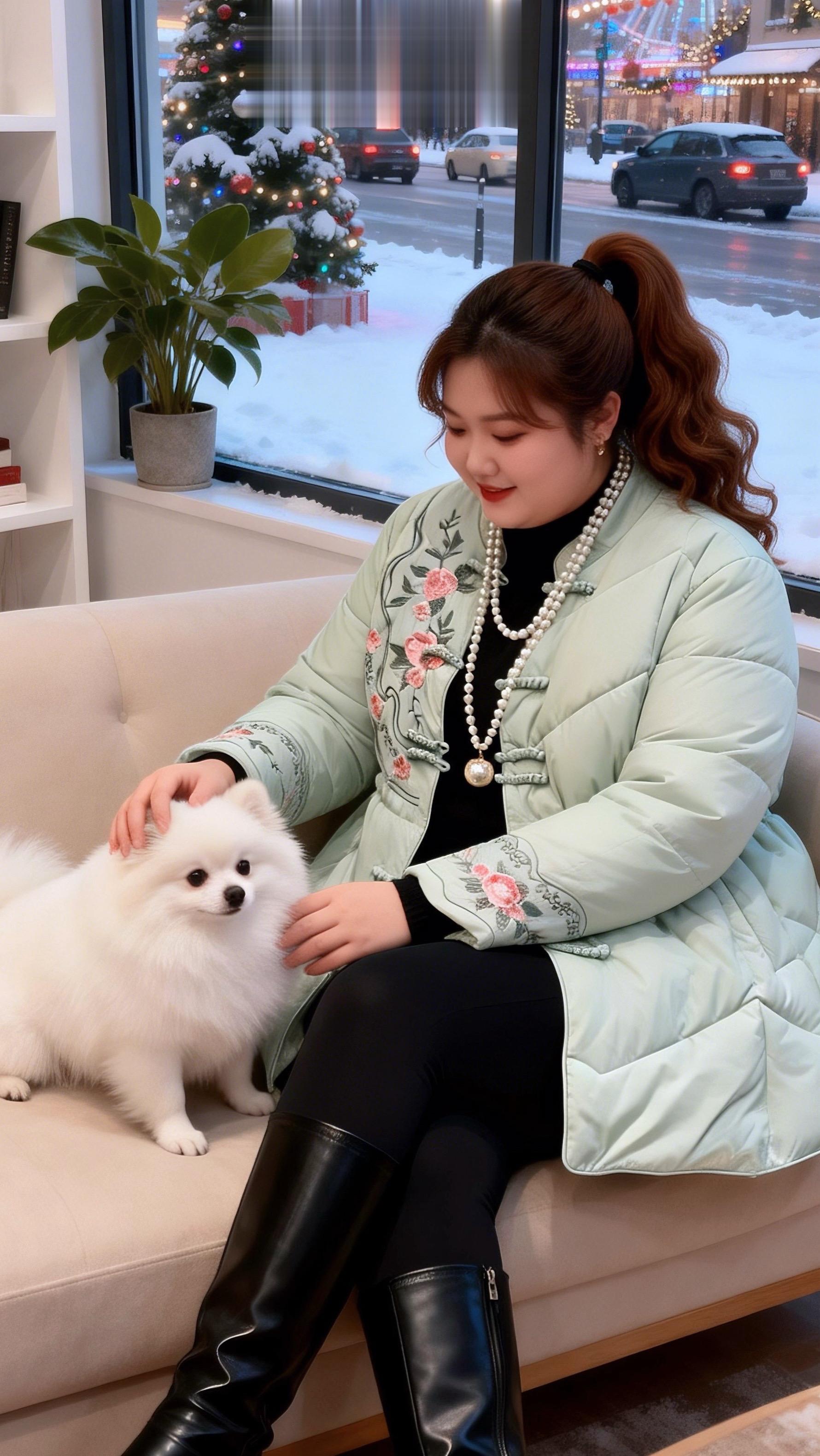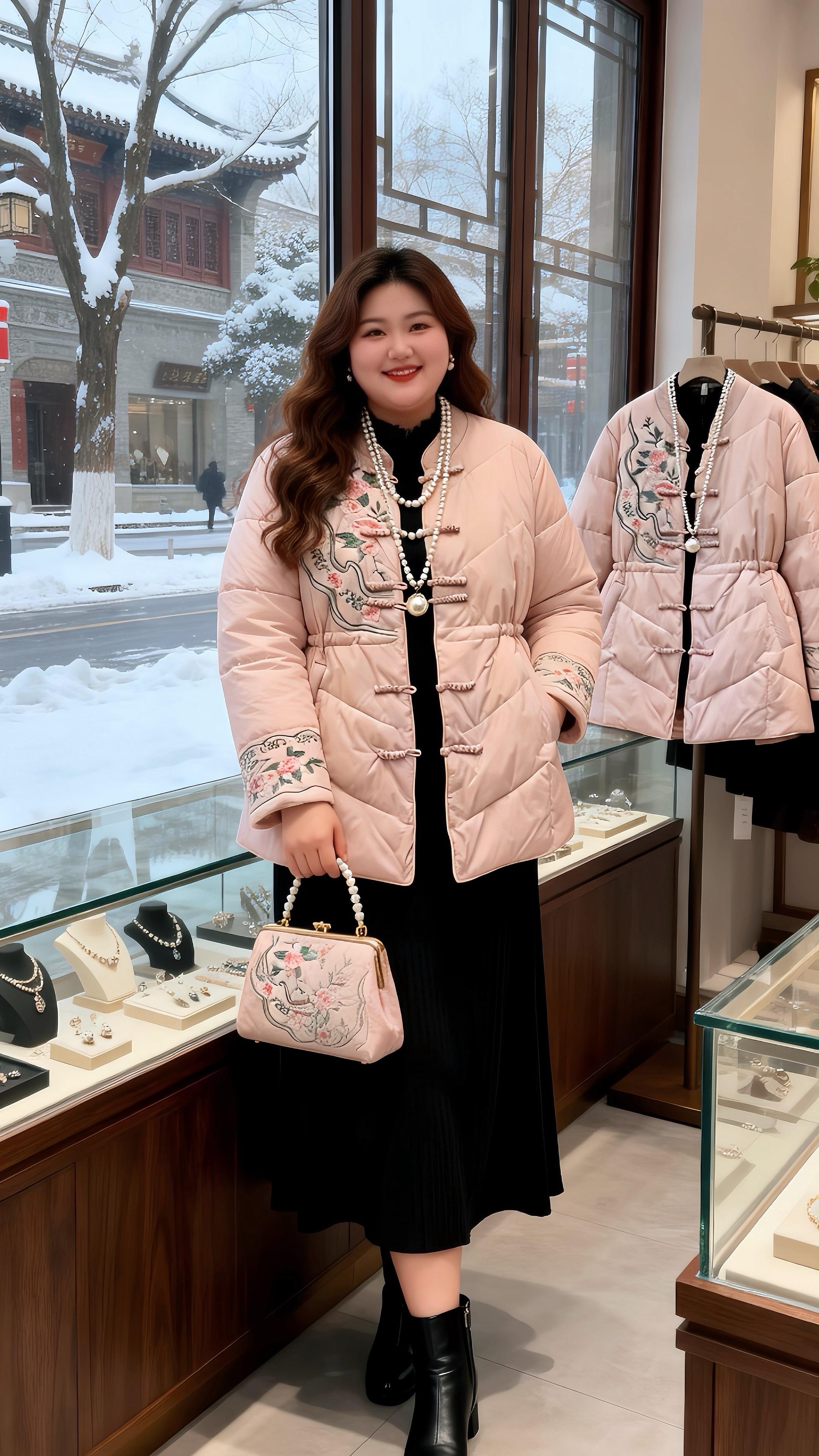 大码女装 国风棉服胖妹妹的冬季有效穿搭新年好运红我先穿上了 棉服也能穿出时尚感