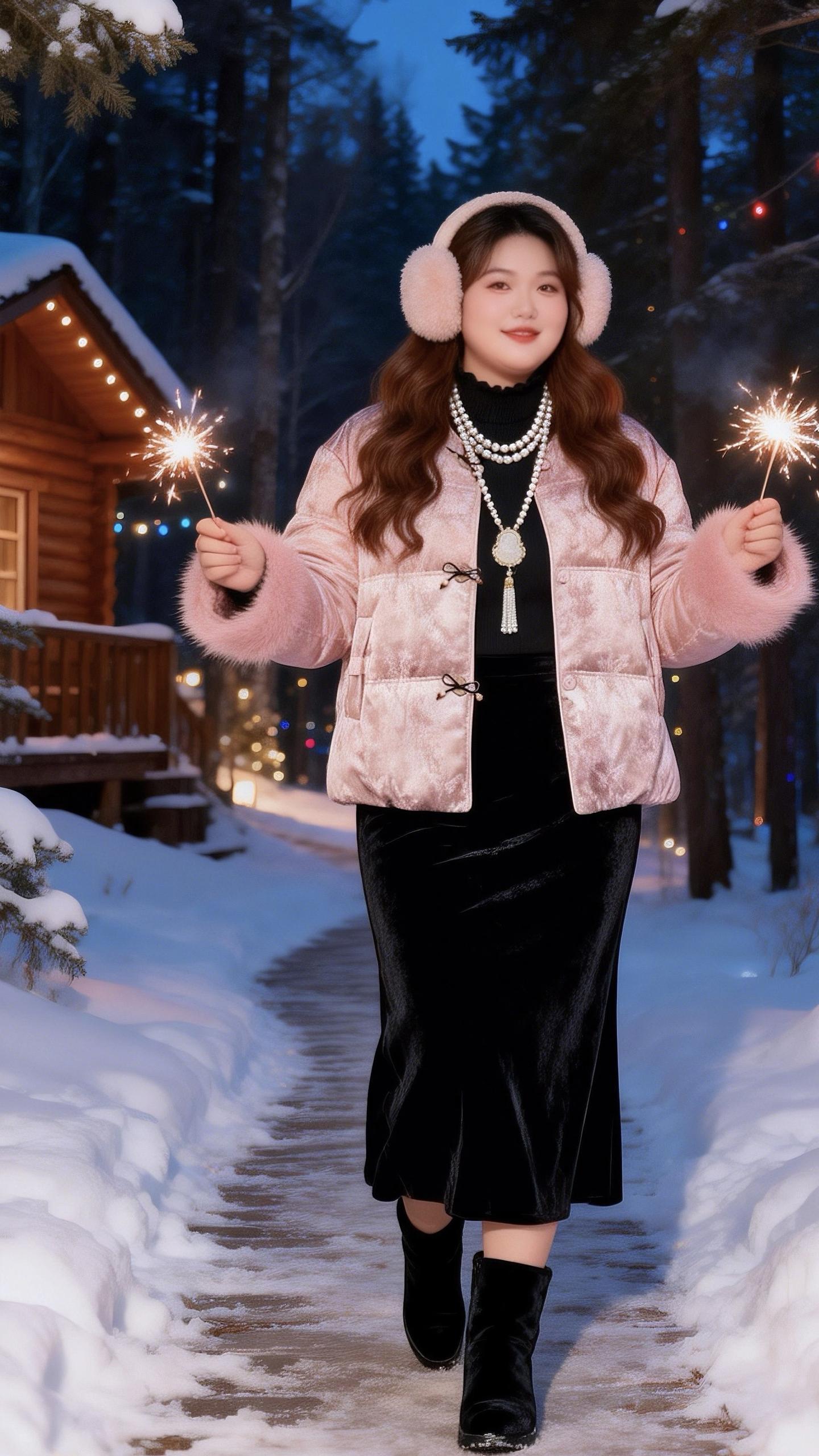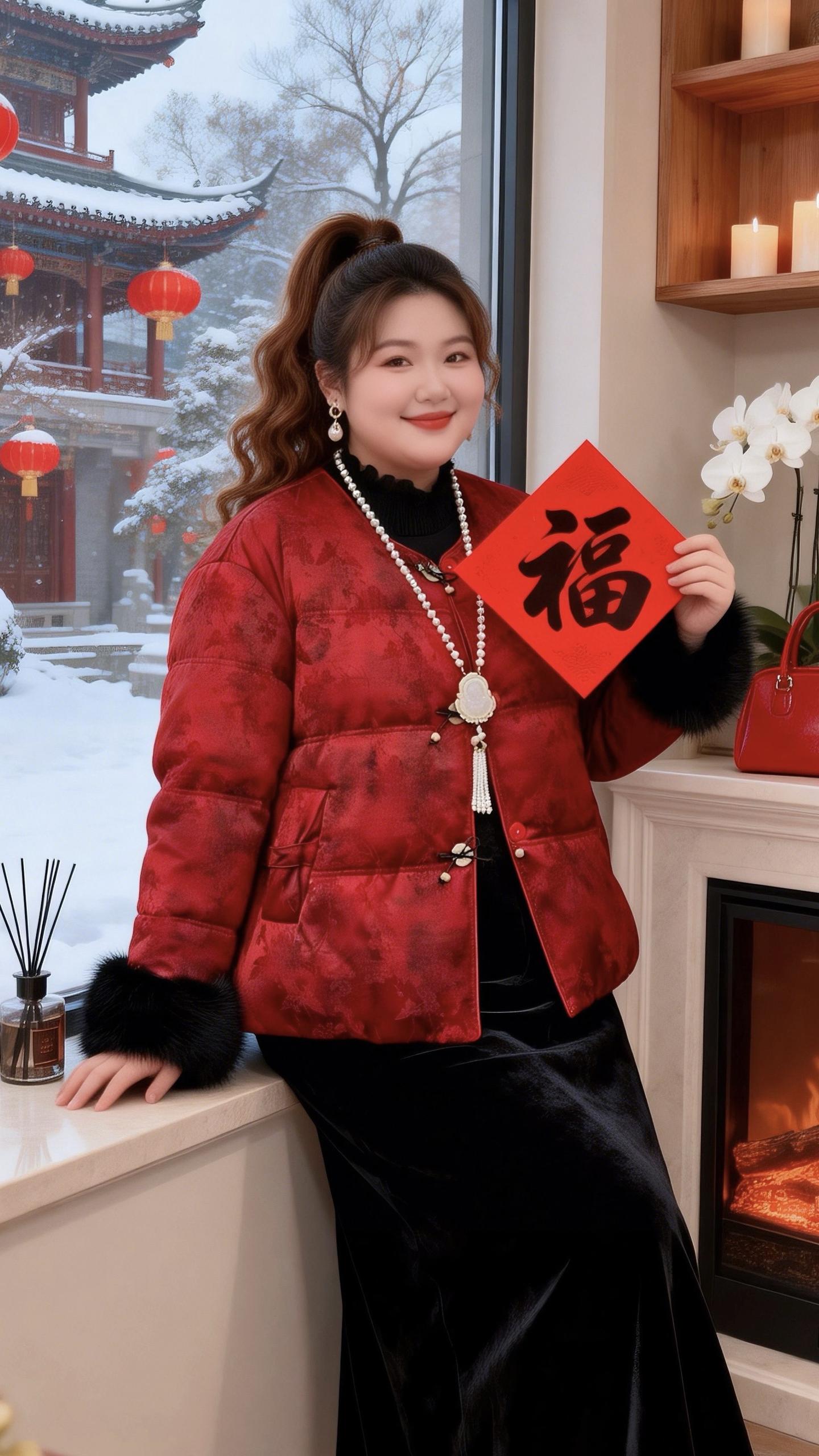 大码女装 国风棉服胖妹妹的冬季有效穿搭新年好运红我先穿上了 棉服也能穿出时尚感