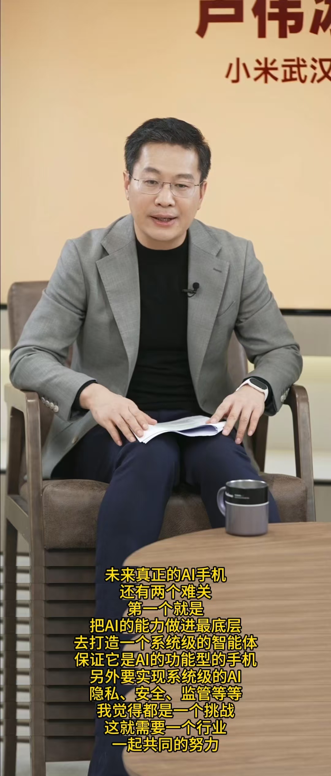 卢伟冰称AI手机是行业共识的大方向卢伟冰在MWC上再次强调“AI手机不是营销噱头,而是OS底层重构”,其实戳破了行业的核心真相——2025年的手机赛道,AI早已不是“可选项”,而是所有玩家必须躬身入局的生存题。没人再纠结“要不要做AI手机”,争议早已转向“怎么做对AI手机”。卢伟冰给出的答案很明确:小米300亿研发预算中四分之一投向AI,不是堆几个语音助手功能,而是让澎湃OS完成从“工具系统”到“AI OS”的质变,再通过Hyper Mind智慧大脑串联手机、汽车、家居,形成“AI+硬件”的闭环。这种逻辑并非孤例:字节带着豆包大模型牵手vivo、联想,荣耀YOYO Agent接入端侧能力,努比亚M153甚至尝试跨App自动执行任务,本质上都是在验证同一条路径——AI必须从“回应指令”升级为“主动协作” 。行业共识的背后,是技术成熟度的集体爆发。2025年全球88%的高端SoC已支持生成式AI,算力达到2021年的四倍,小米HyperVL模型更是把百亿参数大模型的能力塞进手机,能解几何题、读图表、分析界面,让端侧AI真正“能用且好用” 。但共识之下,仍有暗礁豆包手机刚出就被微信封了,被淘宝限制,暴露了AI跨App执行与现有生态的冲突;隐私数据如何在本地闭环处理,避免敏感信息泄露,也是全行业的考题。卢伟冰预判“AI手机真正成型需要2-3年”,恰恰说明这场革命不是一蹴而就的技术堆砌,而是生态、规则与体验的长期磨合。而这一次,小米将会是AI手机的破风者