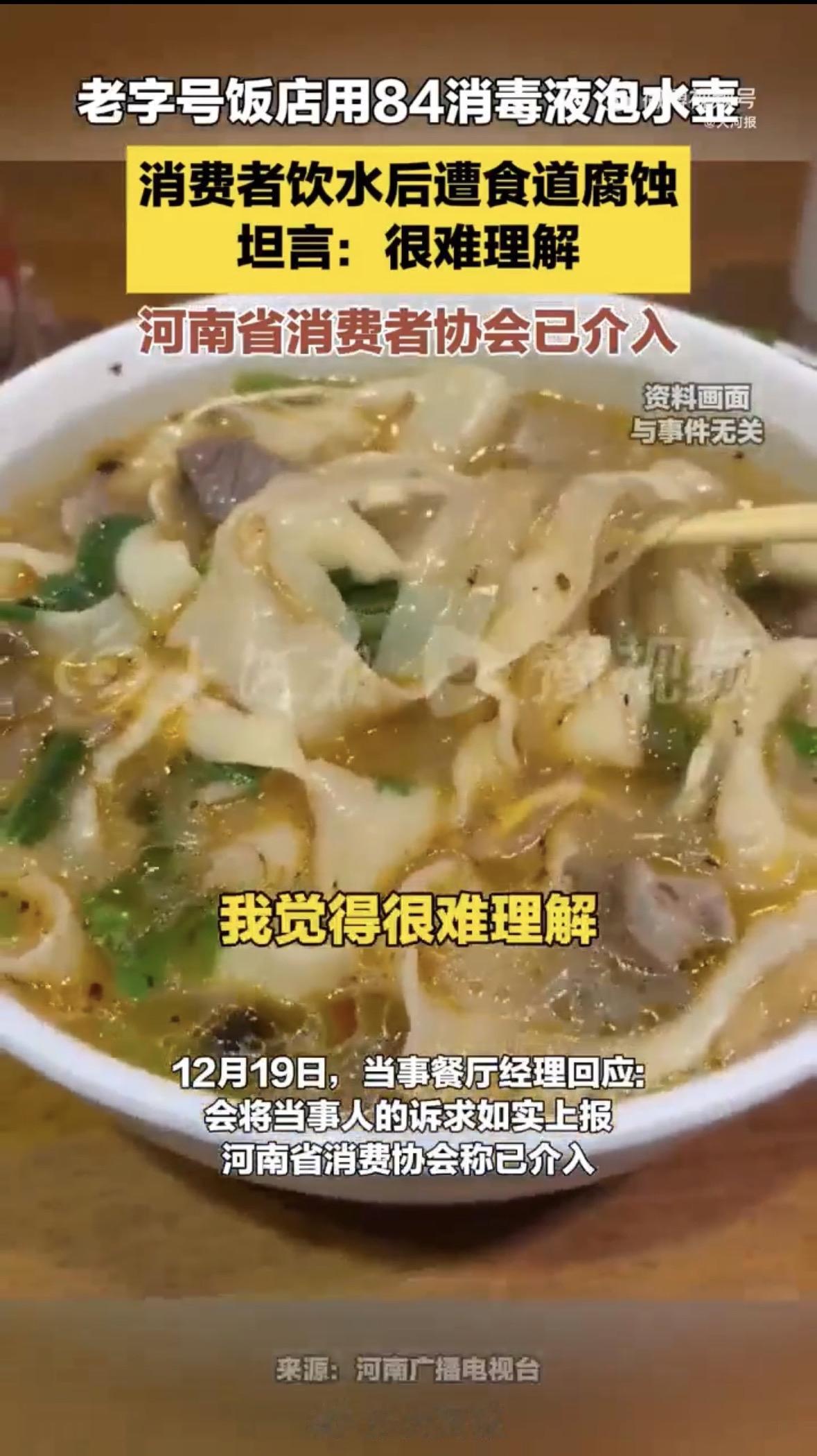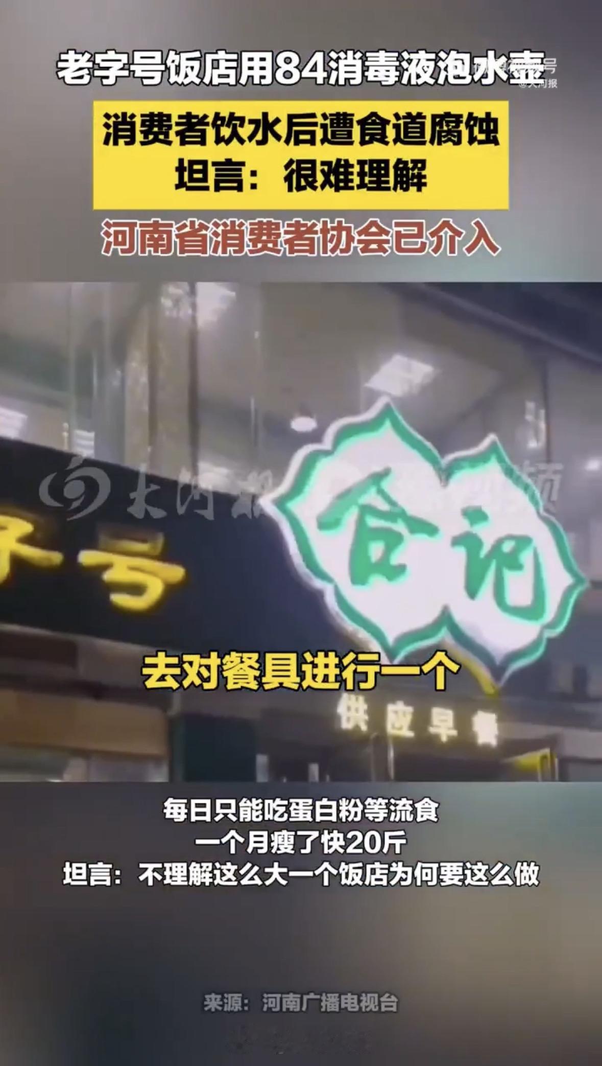 去饭店吃碗烩面,喝口水差点把食道烧坏了!郑州这位简先生最近真遭了大罪,就因为服务员误用84消毒液刷了水壶,他喝下去后直接进了医院。 现在他每天只能靠蛋白粉续命,一个月暴瘦20斤。好好一个人,吃顿饭遭这种无妄之灾。那是84啊,刷厕所用的,怎么能拿来洗客人喝水的壶?也不知后厨是怎么管理的。 餐饮安全真是红线中的红线。杯子碗筷入口的东西,清洁流程但凡有一个环节马虎,就可能酿成大祸。 出事后饭店还没公开道歉,倒是消协已经介入调查了。希望这件事能严肃处理,也给所有餐饮商家敲个警钟,迎客进门,要对得起食客们的信任。 希望简先生早日康复。