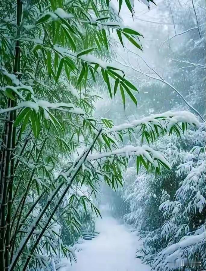琼英轻点翠筠枝, 瘦骨凌霜意自奇。 雪落寒林犹挺秀, 白絮飞舞染翠衣。