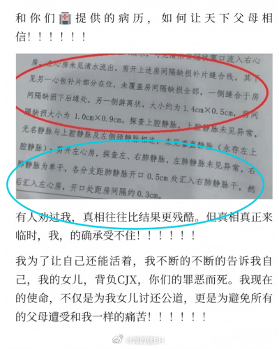 涉事医院回应小洛熙尸检报告 小洛熙事件:情绪之外,更需尊重科学鉴定的权威!真相?真相应该在完整的尸检报告和鉴定结果中! 随着小洛熙事件中家属晒出的尸检报告部分截图,这起医患争执又迎来了热议。作为一名家长和普通公民,我再次对小洛熙的不幸离世深表痛心,也对其父母痛失爱女深感同情。在我自己求医问药的过程中,尤其是家中小孩出生后也有房间隔缺损的经历,我认为小洛熙父母至少不能仅截录尸检报告中的某一片段来主观解读、评判(毕竟他们也不是专业人士)并刻意煽动情绪(如截图中“真相往往比结果更残酷”和“背负CJX你们的罪恶而死”等引导性煽动性用词)。我之前有过婴儿房间隔缺损方面的就医经历,这次也查了些资料,发现就是这张碎片化的截图,也暴露出很多问题。比如截图中提到“房间隔缺损大小为1.0*0.9cm”,而不是0.3cm。我了解到在尸检时,心脏处于停止状态,会比活着的时候稍微缩小。所以小洛熙房间隔缺损应该大于1cm,据相关报道,大于1cm的房间隔缺损对5个月婴儿(更何况是低体重早产儿)的生长发育会造成极大影响。又比如这张截图中“右肺静脉为单干……然后汇入左心房,开口处距房间隔约0.3cm”。我查了资料,这种畸形等于所有来自右肺静脉的血液通过房间隔缺损直接进入了右心房(本应进入左心房),这对小婴儿的影响又是极大的。我认为,小洛熙的家属和广大网友(包括我本人),我们都不是专业的小儿心脏外科专家,就算查找相关资料,也只是对基本的心脏医学常识一知半解。所以,我们还是要尊重事实,尊重科学,既不能偏袒姑息,甚至丧失公平;更不能消费悲情,甚至网络施暴。我们应该一起等待最终的医疗技术鉴定结果。心包右侧面见长5.0cm未缝合切口最近一直关注着xlx事件,很揪心很心痛。sj报告截图发出来,今天看了整整一天网上信息。刚看到心包切口没缝时也很不理解,咨询了心脏专业医生,也看了很多评论区专业医生的分析。心脏外科手术后心包常规不缝合,是为了预防心包填塞,压迫心脏。当然对于我们普通人,报告里还有很多看不太懂的地方。尊重科学、尊重事实是还原真相的最重要态度,而不是情绪性的宣泄。希望最终的鉴定结果能把这段时间以来网友们心中的疑问都梳理清楚,能够给出科学、客观的结论。右侧第3-4肋间见长6.5cm的横行手术创口指的是2根肋骨之间的切口,而不是皮肤切口。此种手术肋骨肌切口是不需要缝合的。皮肤切口不缝合是绝对不可能的,我想尸检报告的其他部分肯定会有皮肤切口的描述。