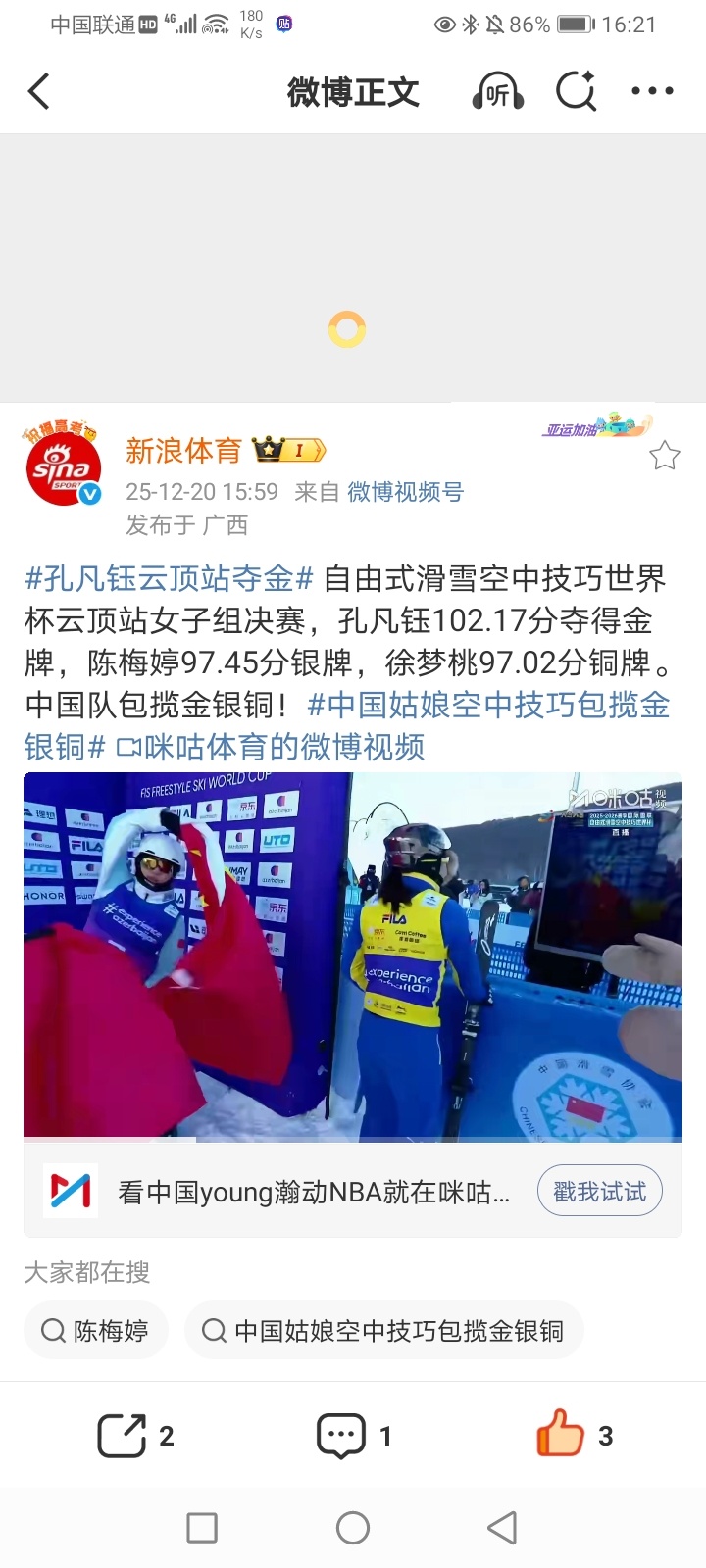 2025年12月21日-2025-2026CBA常规赛第4轮(第一阶段第4轮) 吉林92-86爆冷战胜新疆(吉林男篮获得两连胜)/末节差点被翻盘 辽篮90-88险胜宁波(威尔斯26分/付豪16分/莫兰德与王岚嵚各得到12分)/山东98-88北控(山东男篮获得两连胜成功复仇/北控男篮遭遇两连败)/北京104-88大胜深圳(上届亚军北京男篮获得四连胜/深圳男篮遭遇两连败)/四川53-84南京(同曦)(四川男篮遭遇四连负)/浙江稠州88-79福建(浙江稠州男篮终结三连败 获得赛季首胜) 2025-2026WCBA常规赛A组第7轮(第一阶段第7轮) 石家庄(河北)86-75大胜浙江(河北女篮终结五连败 获得赛季第二胜/浙江女篮遭遇五连败)/山西78-74爆冷大逆转战胜四川(四川女篮获得五连胜/上届亚军四川女篮遭遇三连败) B组第7轮(第一阶段第7轮) 大连(辽宁)66-67惜败合肥(合肥女篮获得两连胜/辽宁女篮终结六连胜 遭遇赛季首败 仍然暂时领跑积分榜 陈孟欣17分/付金秋15分/吴爽与麦伊莎各得到10分) 2025-2026女排超级联赛A级常规赛第一阶段第3轮 上海3-1河南(25-19 25-18 18-25 25-18)(上届亚军上海女排获得三连胜 暂列小组第一/河南女排遭遇三连负 暂列小组倒数第二)/辽宁0-3江苏(22-25 20-25 13-25)(上届季军辽宁女排遭遇三连负 没有积分 没有胜局 继续小组垫底)/天津3-0福建(25-11 25-21 25-17)/北京3-2大逆转战胜山东(20-25 19-25 25-20 25-18 15-13)(北京女排获得两连胜/山东女排终结两连胜 遭遇首败) B级常规赛第3轮 四川3-1逆转战胜河北(20-25 25-15 25-19 25-22)(河北女排遭遇三连负)/浙江3-2爆冷逆转险胜广东(深圳)(25-16 22-25 22-25 25-10 15-9)(浙江女排获得三连胜 暂列小组第一/广东(深圳)女排终结两连胜 遭遇首败)/江西0-3云南(22-25 22-25 18-25)(云南女排获得两连胜/江西女排遭遇三连负 没有积分 没有胜局暂时小组垫底) 2025东亚足联U15男足锦标赛第2轮 韩国1-1绝平中国(目前1平1负 暂时积分榜垫底) 部分重点赛事预告:CCTV5直播:6:55 2025广州马拉松赛 19:30 2025-2026CBA常规赛第4轮(第一阶段第4轮) *浙江广厦-上海 CCTV5+直播:CCTV5客户端直播:15:30/16:30/19:00/20:00 2025-2026男排超级联赛A级常规赛第一阶段第3轮 河北-辽宁/天津-上海/山东-广东/北京-浙江 15:30(2场)/19:00 B级常规赛第3轮 四川-云南/福建-江苏/河南-湖北 其他:19:35(3场) 2025-2026CBA常规赛第4轮(第一阶段第4轮) 广东-青岛/江苏-广州/天津-山西 19:30(4场) 2025-2026WCBA常规赛B组第7轮(第一阶段第7轮) 江西-厦门/河南-福建 A组第8轮(第一阶段第8轮) 上海-山东