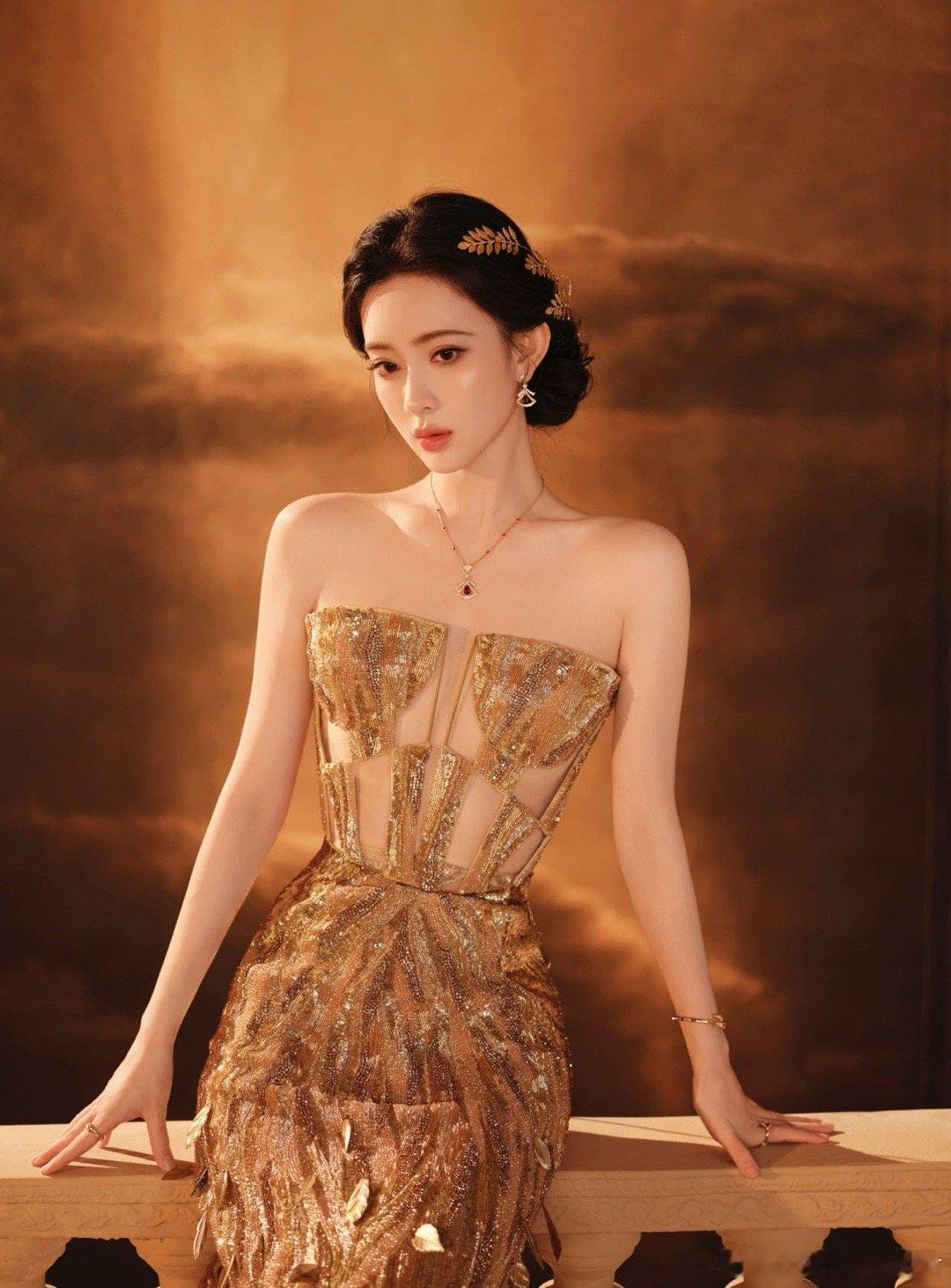 孟子义鎏金女神 从发丝到裙摆都在发光!孟子义完美驾驭鎏金造型,诠释了什么叫“优雅