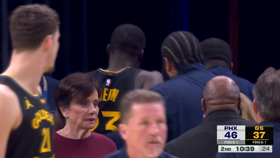 库里刚投进一个3+1,追梦就主动推搡吉莱斯皮然后被裁判连吹两个技术犯规驱逐了。现