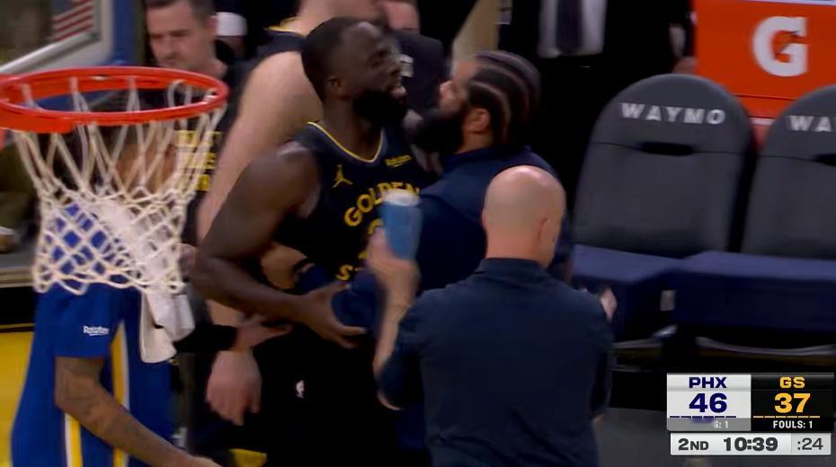 库里刚投进一个3+1,追梦就主动推搡吉莱斯皮然后被裁判连吹两个技术犯规驱逐了。现在都流行献祭流吗?