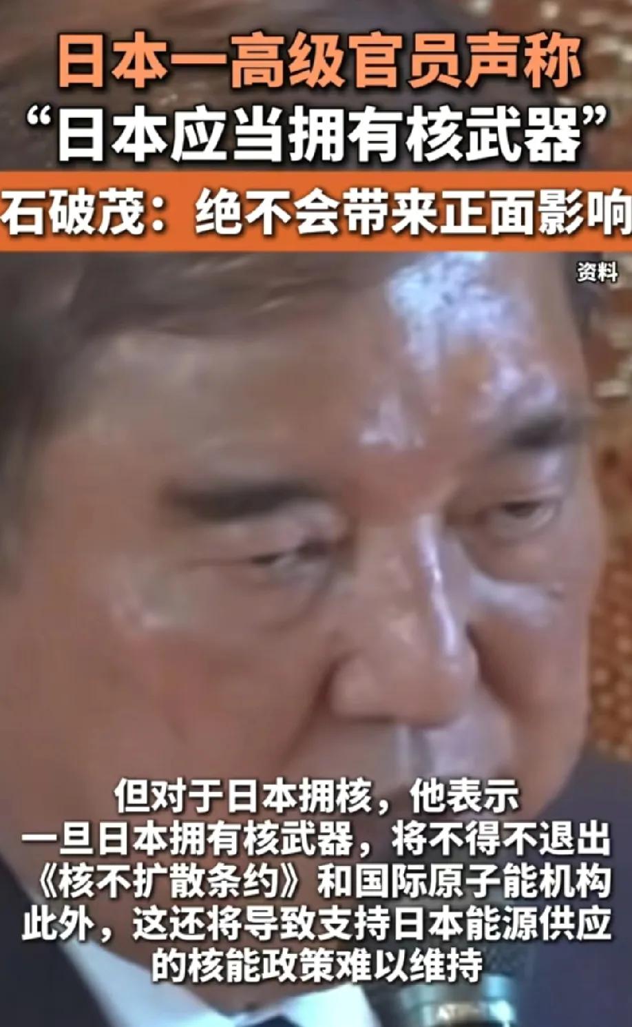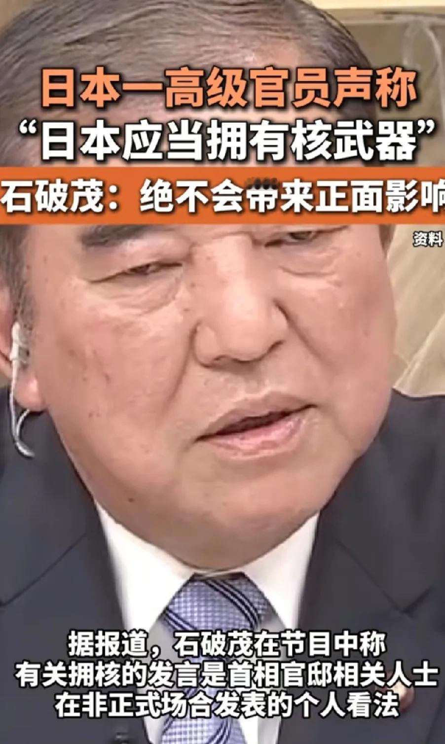 警惕,日本的右翼不会因高市早苗言论而偃旗息鼓,更需要注意石破茂这样隐形且老谋深算的政客! 高市早苗上台只是一个嘴替角色,像她这样不是出身政治世家且在政斗中算是新手的政客,在日本一抓一大把,这样的政客因为其背后没有政治家族,纯靠口号支撑其支持率,即便将来被放弃掉也不算是日本政坛的损失! 恰恰相反的像石破茂这一类头脑清醒且极具有迷惑性的政客才是我们需要重点关注的对象! 和高市早苗这类政客打交道,看似针锋相对实则是你来我这,拆招出招都比较简单,你来我往间咱们军事经济实力碾压他们,我们游刃有余! 但石破茂这样的人,是很清醒的,他很清楚中日之间的矛盾症结在何处,所以他在高市早苗上台前就做出了警告——别把日本带的跑偏了! 这样的政客,隐忍且克制,他们为了达到目的不惜装疯卖傻,在国际会议上打瞌睡,其实看问题的角度和长远度都是高市早苗这类目光短浅的政客所不能比拟的。 正如石破茂如今变态的日本拥有核武器的问题,他给出了极为中肯的结论——绝不会带来正面影响! 但他说这话恐怕是言不由衷,日本像不像拥有核武器? 答案是必然的! 一旦拥有核武器,日本这个国家走向正常化的可能性会大大增加,核威慑可不仅仅是一张王牌那么简单! 石破茂不眼馋才怪,但他不会自己说出来,这就是他高明的地方,借着高市政府的嘴说出来,他一方面能看中美俄的反应,另一方面他也跳出了这个漩涡,将麻烦留给了高市早苗政府!
