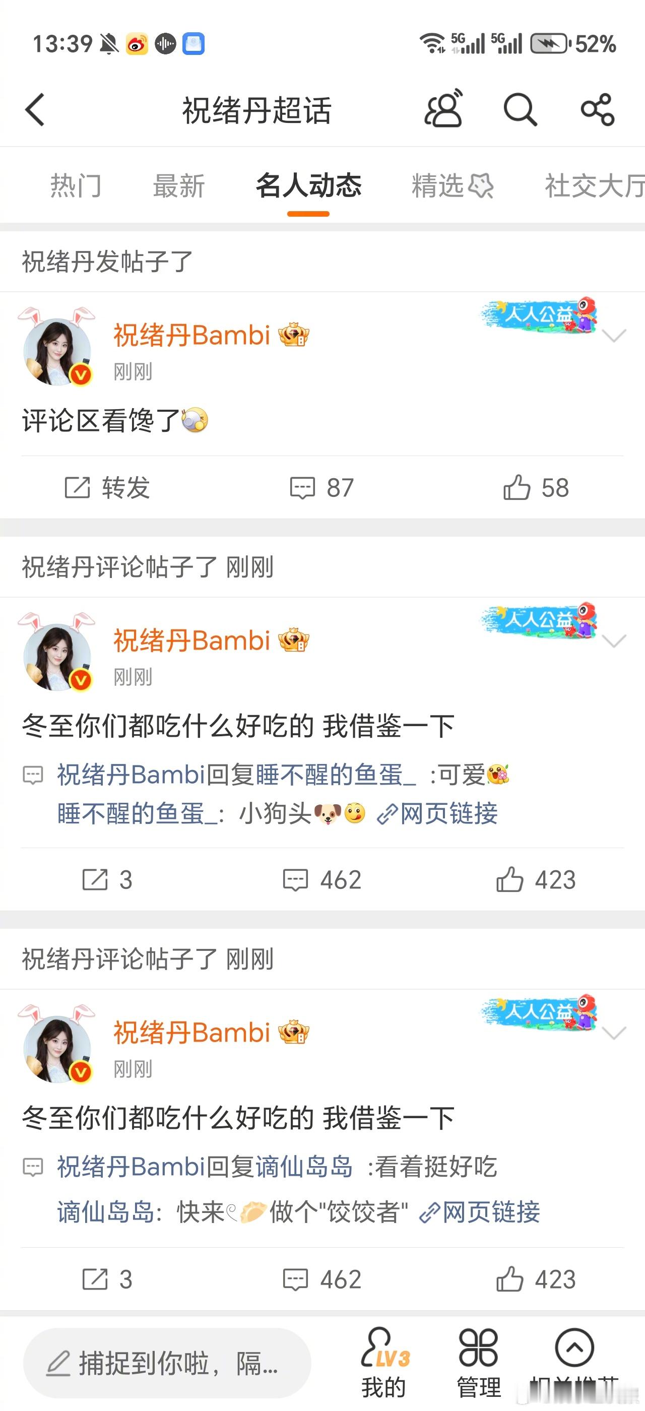 祝绪丹又文字直播了 祝绪丹冬至全报备 东北人的热情大方也是让我体会到了! 冬至空降超话和粉丝唠嗑报备,问粉丝们都吃了什么,看评论甚至给自己看馋了,我们小太阳就这样在冬至悄悄温暖所有人!