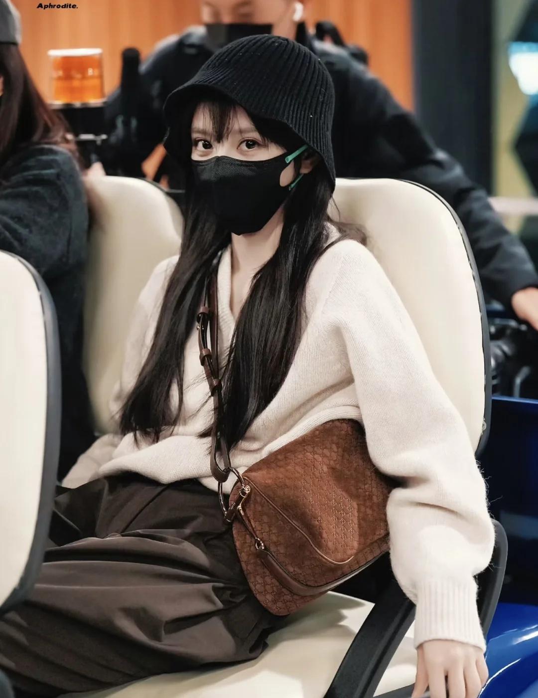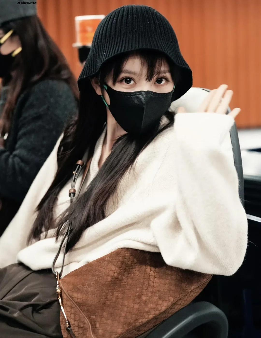 田曦薇穿搭|好有氛围感! 这身穿搭也太有韩系氛围感了吧! 米白色V领毛衣温柔又软糯 搭配深色裤子简约又显瘦 黑色针织渔夫帽一戴 慵懒随性的气质直接拉满 再配上焦糖色的包包做点缀 细节感直接拉满 素颜出街的松弛感天花板了