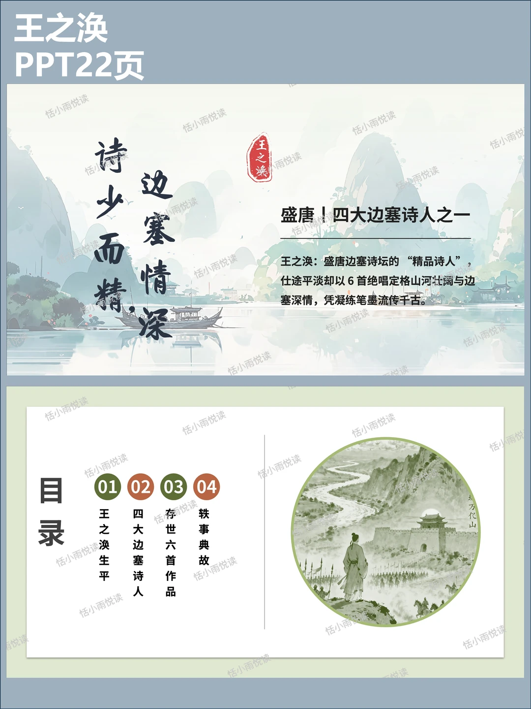 虽是小官,王之涣却尽职尽责。县令很赏识他,甚至把18岁的女儿嫁给了这位已有两个孩子的中年男人。年龄差近20岁,可李氏早已仰慕他的才华,任劳任怨陪伴左右,成了粉丝嫁偶像的千古佳话。