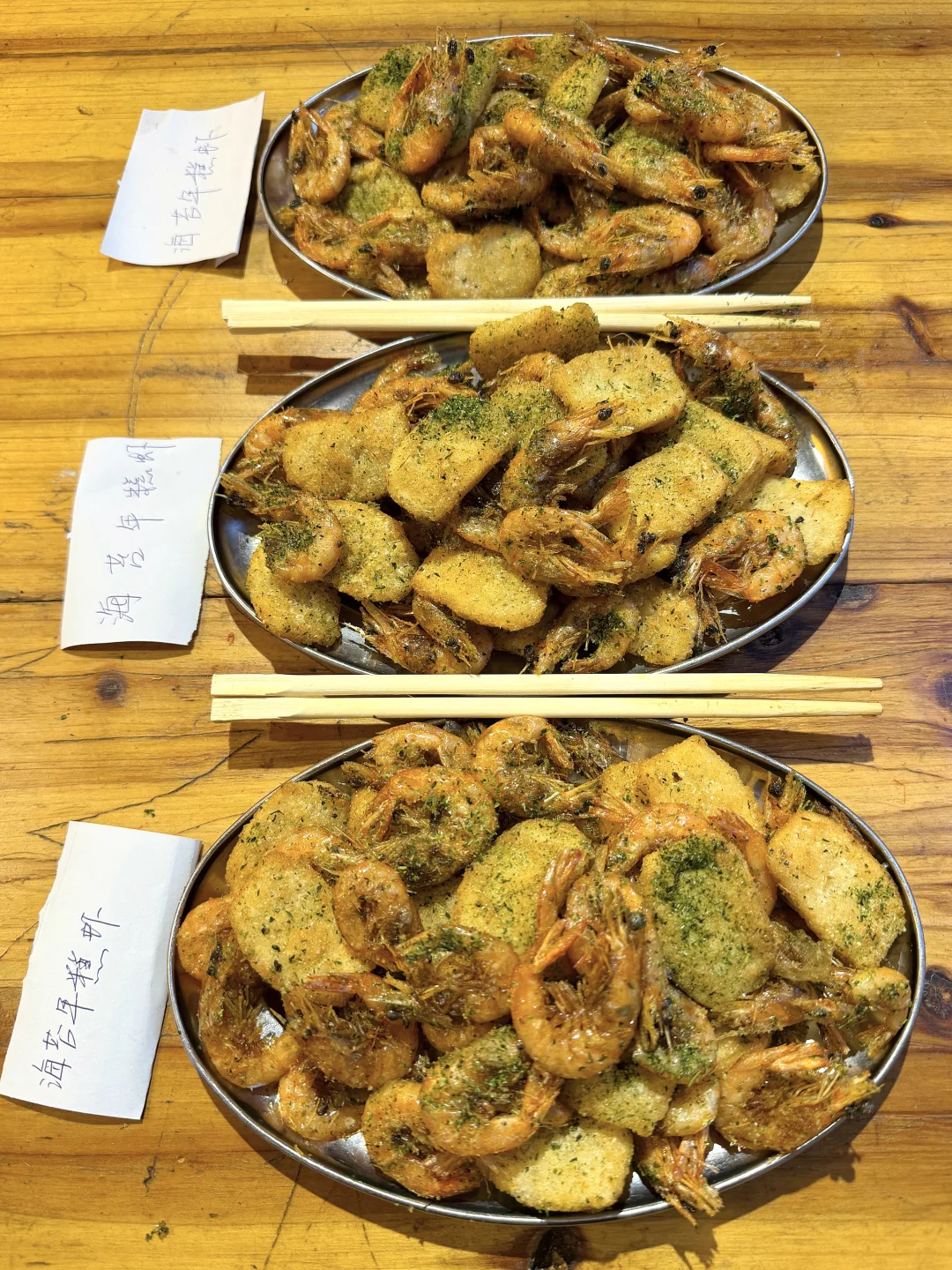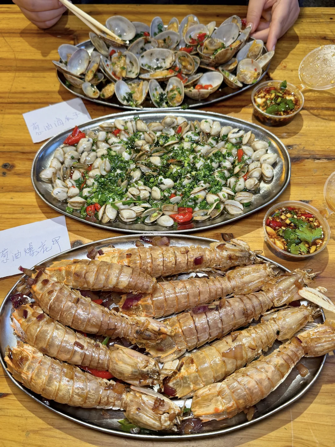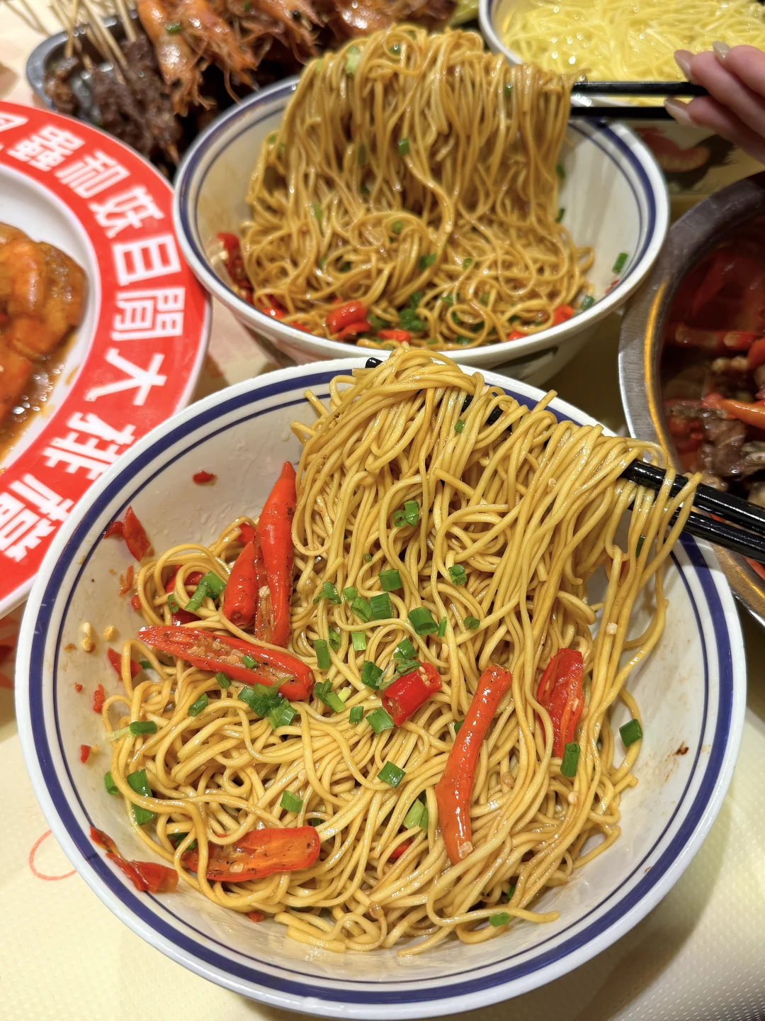 开了十多年的老口碑店子,真的上过电视台!还经常能偶遇明星!被本地人称作:五一广场商圈夜宵届的扛把子! 真碳烤,真的好吃!菜品也扎实份量足,海苔年糕虾、烤鱼片jujuju好吃!罗氏虾、葱油爆花甲…都是老长沙口味!还有仙品炼乳烤糍粑!糯叽叽的绝了😭😭口味和性价比都很高,这么好吃的店还有姐妹不知道我真的会为你感到遗憾! 记住这个店名🥢马叉虫和妖且闲·长沙大排档
