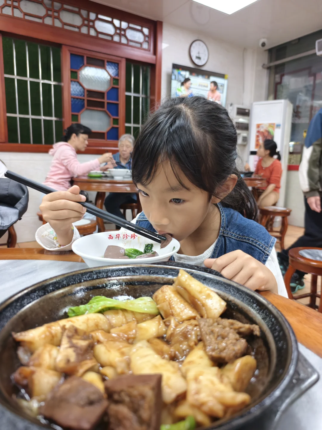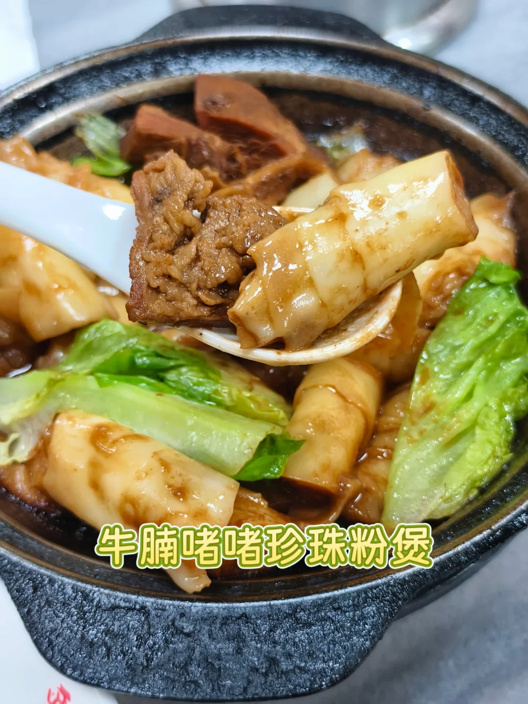珍珍小食店,牛腩啫啫珍珠粉,口感弹压牙,牛腩味道浓郁,令人回味啊!这家陈村粉也值得点,还有猪红,虽然猪红性价比不高(16一碗),但是好吃,整体还可以,要先买单再吃,有小票的直接去窗口拿,给号码桌牌的就直接放桌面上等就行。
