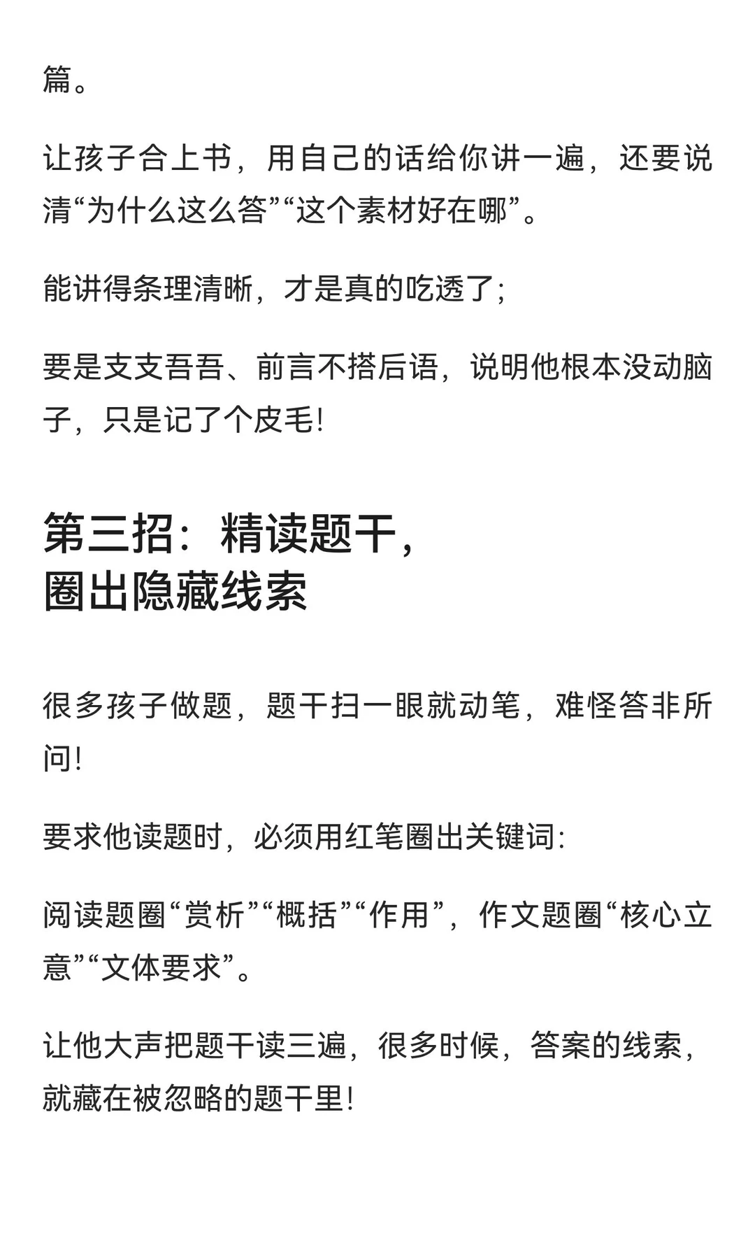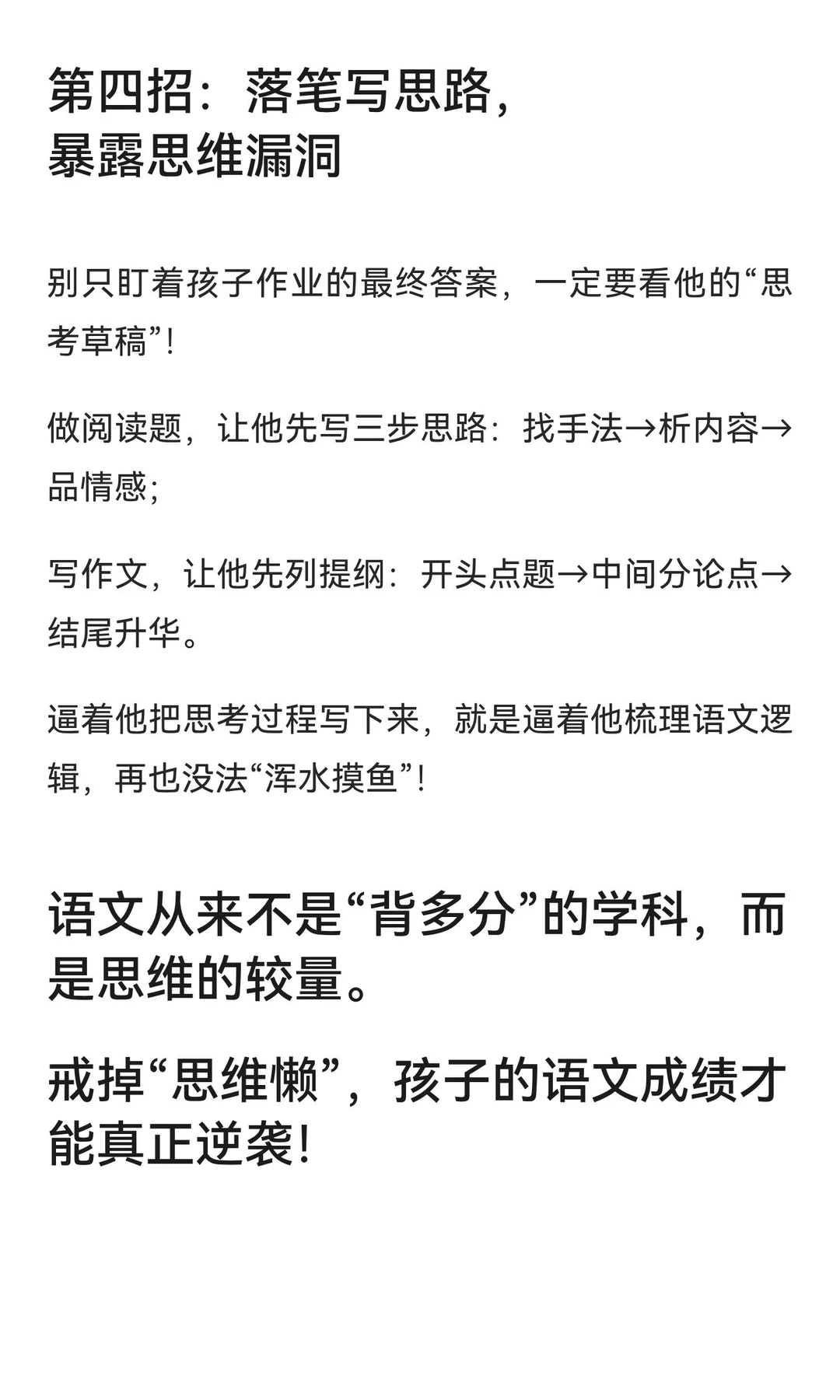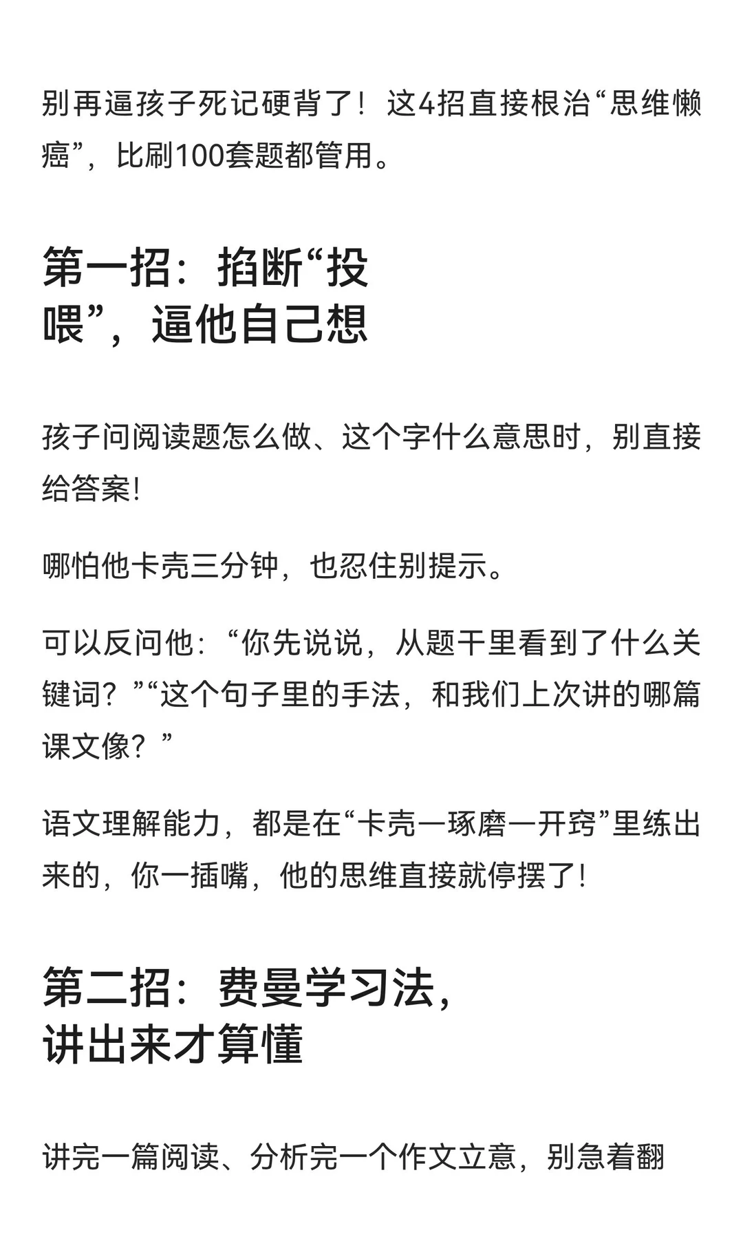 语文成绩差的孩子往往懒得动脑,依赖死记硬背和教辅。通过掐断“投喂”、费曼学习法、精读题干和落笔写思路,可以有效提升思维能力,避免无效努力,真正提升语文成绩。