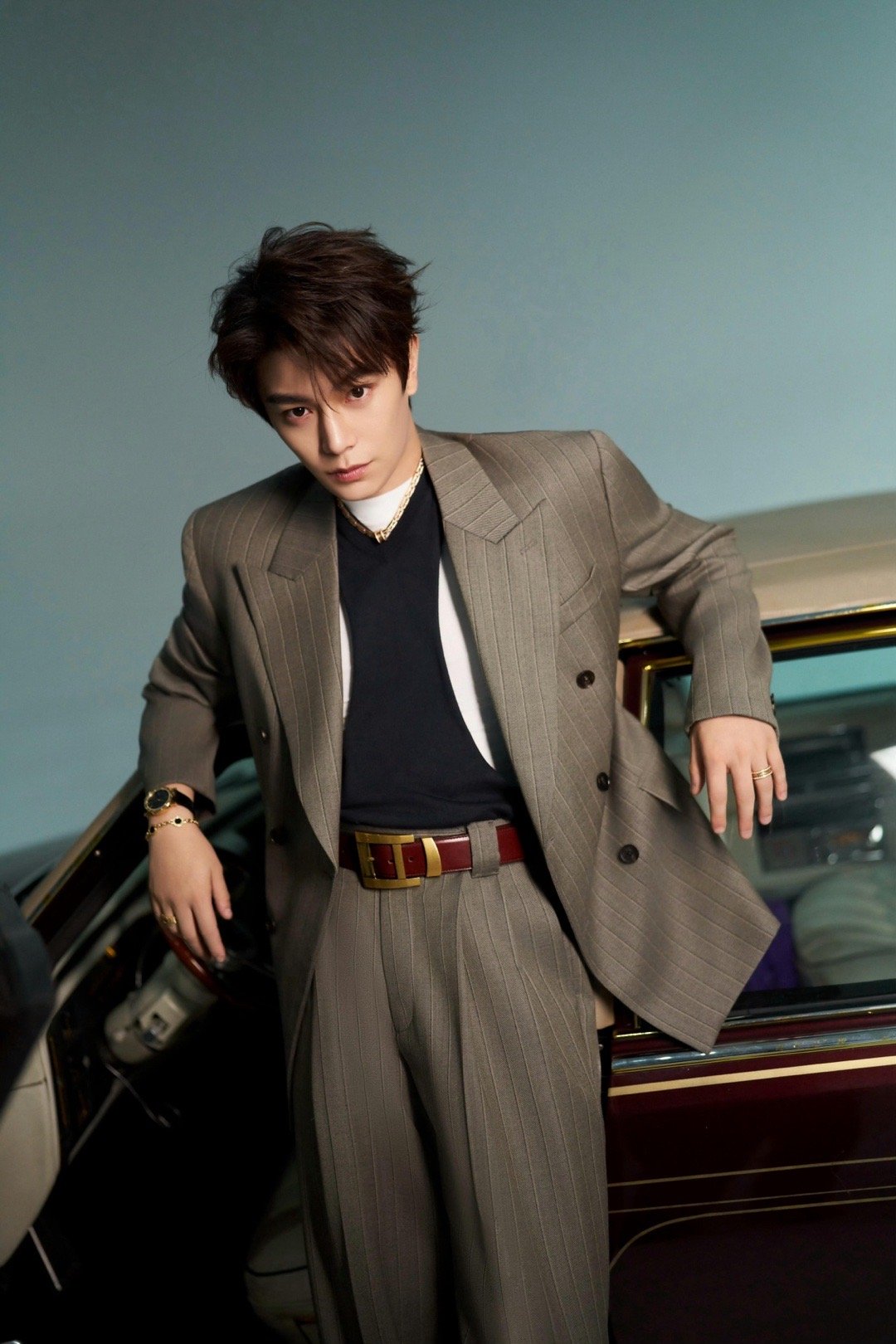 丁禹兮星光大赏造型来咯!浅棕条纹西装搭黑色内搭,松弛与贵气的质感拉满,复古贵公子具象了
