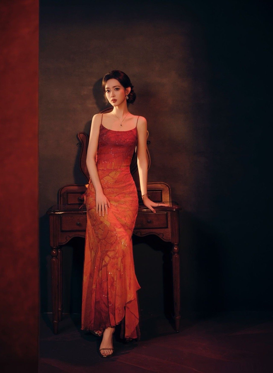 孟子义解锁ES高定孟子义红锦鲤 当锦鲤披上星光,便有了孟子义的模样。这身红色高定,完美衬托她的明艳大气,眼角的泪珠如同花瓣上的晨露,将氛围感瞬间拉满。这份冷艳与妩媚,是独属于她的复古名伶气质。