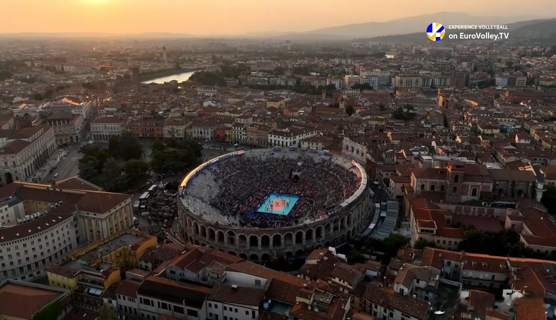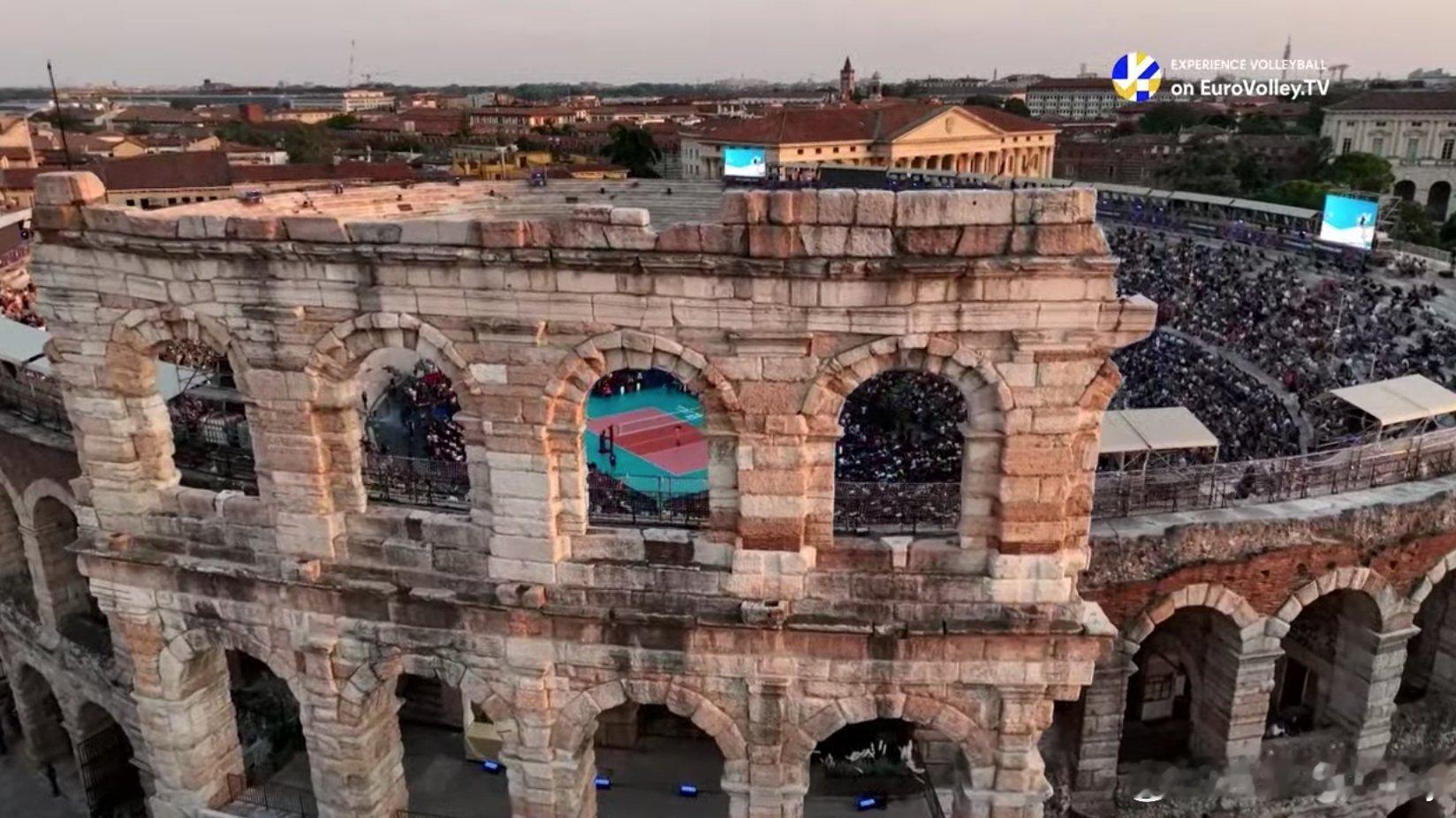 2023年女排欧锦赛曾在意大利维罗纳竞技场举行。说到将历史、自然、美学和排球融为