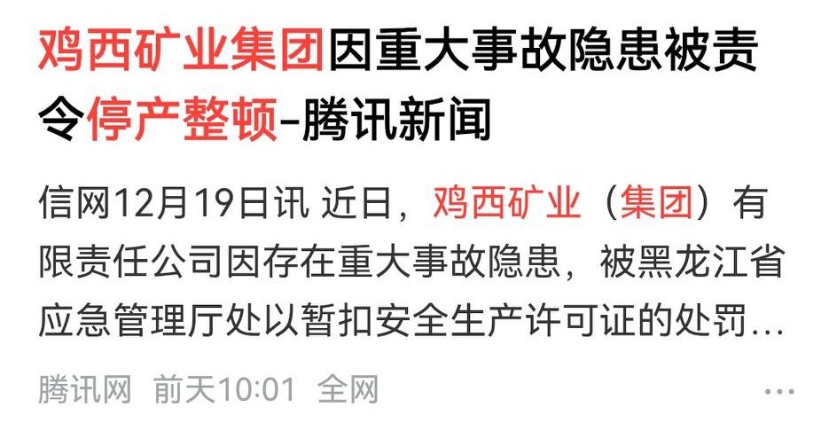 黑龙江鸡西!前天刚曝出矿业集团被停业的消息。今天又有其他煤矿出事了。 快过年了