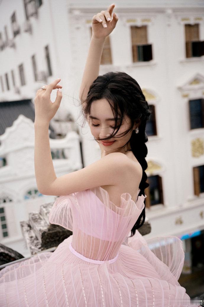 邓恩熙好明媚的生命力邓恩熙一袭粉纱裙立于天台,层叠褶皱如揉碎的云霞在风中舒展,抹胸设计勾勒灵动肩颈,束腰处的立体剪裁让裙摆如花瓣般绽放。少女与古建相映,粉裙似春日初绽的花苞,将鲜活朝气揉进老时光里,每一帧都是会呼吸的青春诗篇。