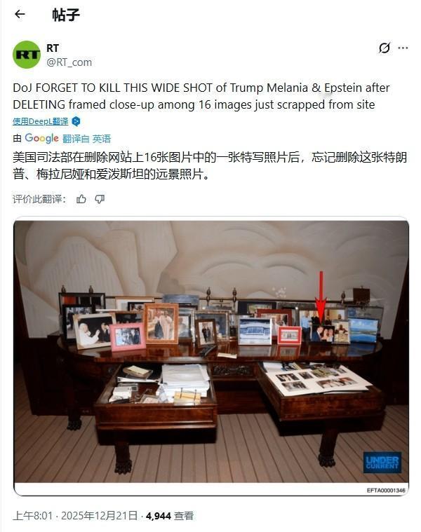 美国司法部翻车,爱泼斯坦文件藏了特朗普照片,被发现后紧急删除 现在似乎可以认为,先前爱泼斯坦文件曝光的那段“特朗普与克林顿存在不正当关系”的记录,是美国司法部没仔细审查,不小心公布出来的。MCN双量进阶计划 之所以这么说,是因为这两天各路媒体在查阅12月19日公开的爱泼斯坦文件时又发现了一个新乐子:这批文件中夹带了一张特朗普与爱泼斯坦及其前女友吉斯莱恩·麦克斯韦的合影照片。 然而,当这张编号为468的照片被人注意到且引发关注后,它却从美国司法部的记录中“消失”了——根据美联社的说法,实际被删除的不止这一张照片,还有另外16张照片或文件。西方权贵深陷爱泼斯坦案 不过,美国司法部也没有彻底删干净,因为美媒很快又从这堆文件中发现了另一张特朗普及其夫人梅拉尼娅与爱泼斯坦的合影照片。特朗普爱泼斯坦旧照 如之前所说,这次被公开的爱泼斯坦文件,被特朗普团队当成了反击民主党的舆论工具,因此克林顿被曝光的黑料明显多于同样是爱泼斯坦好友的特朗普。 但美国司法部显然没有能力彻底检查这批多达数十万页的文件,因此这才让媒体时不时能从这批文件中发现一些新的细节。 目前美国媒体和各路吃瓜群众对这批爱泼斯坦文件的深挖还没有结束,未来这几天必然会有更多的爆料出现。