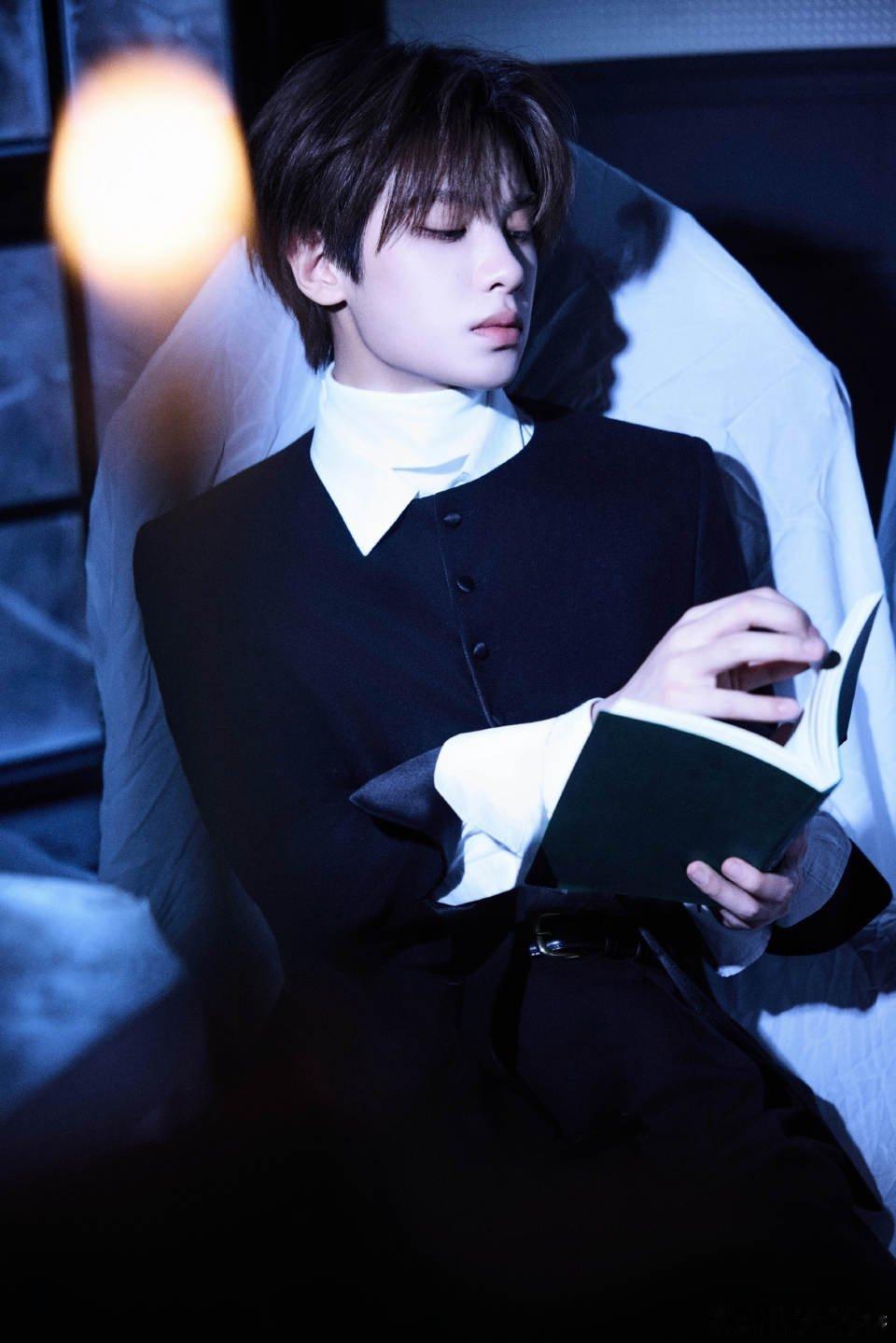 黄明昊看了多少短剧想出的文案 黑白皮大衣造型像大boss出场,哥特风又像反派少年。他的配文“重生之大boss竟是自己”太洗脑,短剧风格拿捏得死死的。