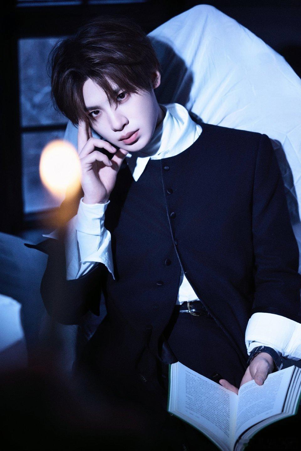 黄明昊看了多少短剧想出的文案 黑白皮大衣造型像大boss出场,哥特风又像反派少年