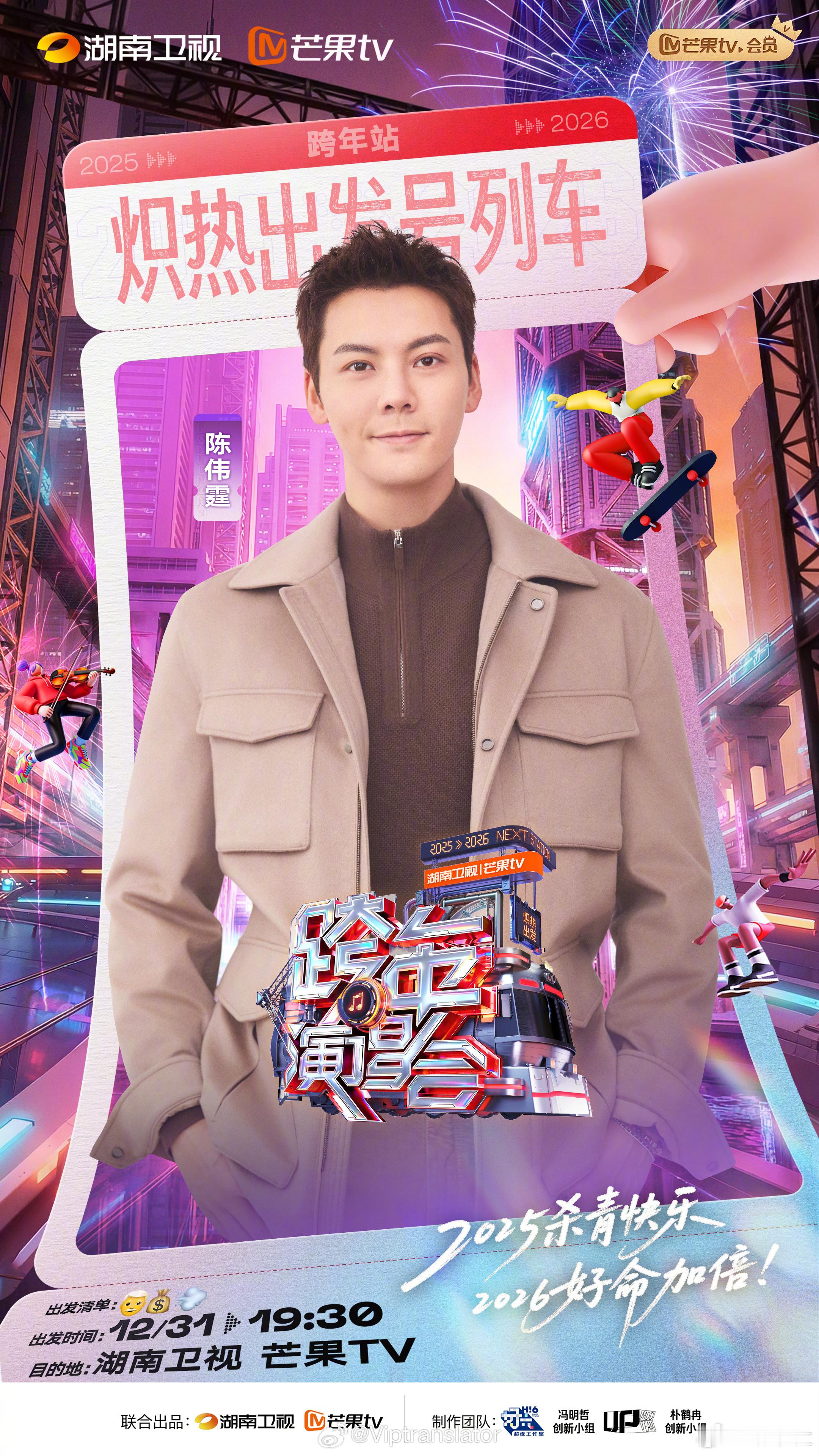 湖南卫视跨年演唱会9大热门明星阵容齐聚邓超 时代少年团华晨宇 王嘉尔 陈伟霆 黄景瑜吴宣仪 谭松韵全球最帅歌王陈楚生