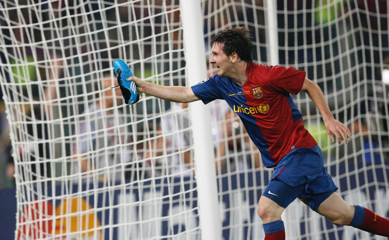 在最初的TUNiT时代,梅西曾穿着定制版F30i球鞋,并偏爱固定式大底。这种设计有助于他的细腻控球和干净利落的射门,而这些特点也逐渐成为他当时比赛风格的标志,包括在2009年欧冠决赛中的表现。