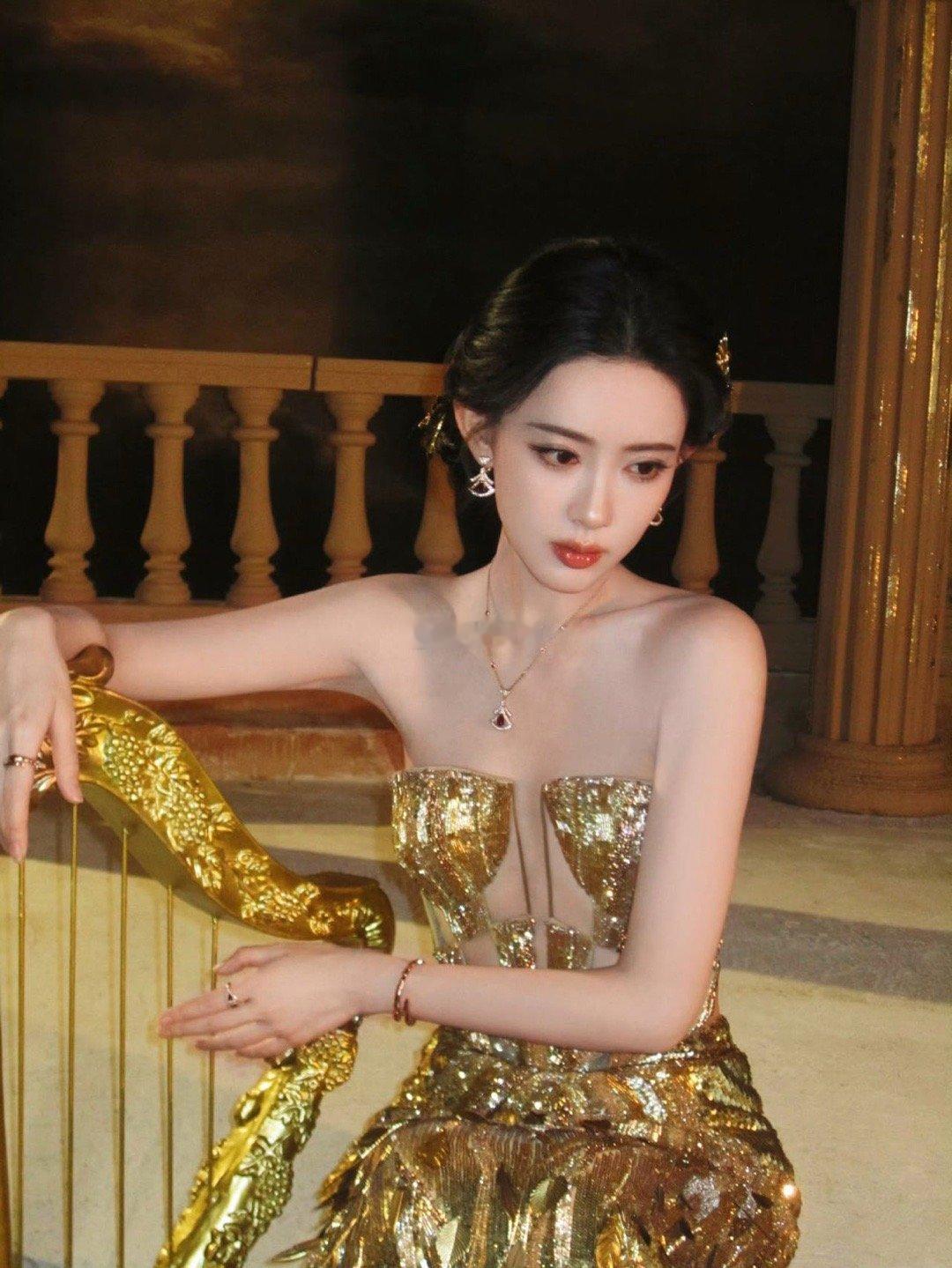 孟子义红锦鲤神女造型 从妩媚的红到神圣的金,孟子义的美学跨度令人叹服。眼角一滴泪