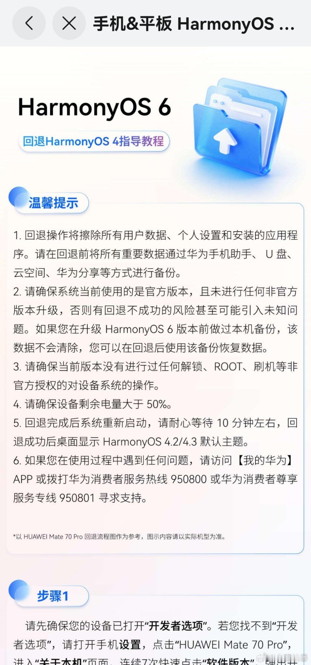 华为的手机开始发送短信提醒用户升级鸿蒙6了,虽然给了回退教程,但是大家务必注意,