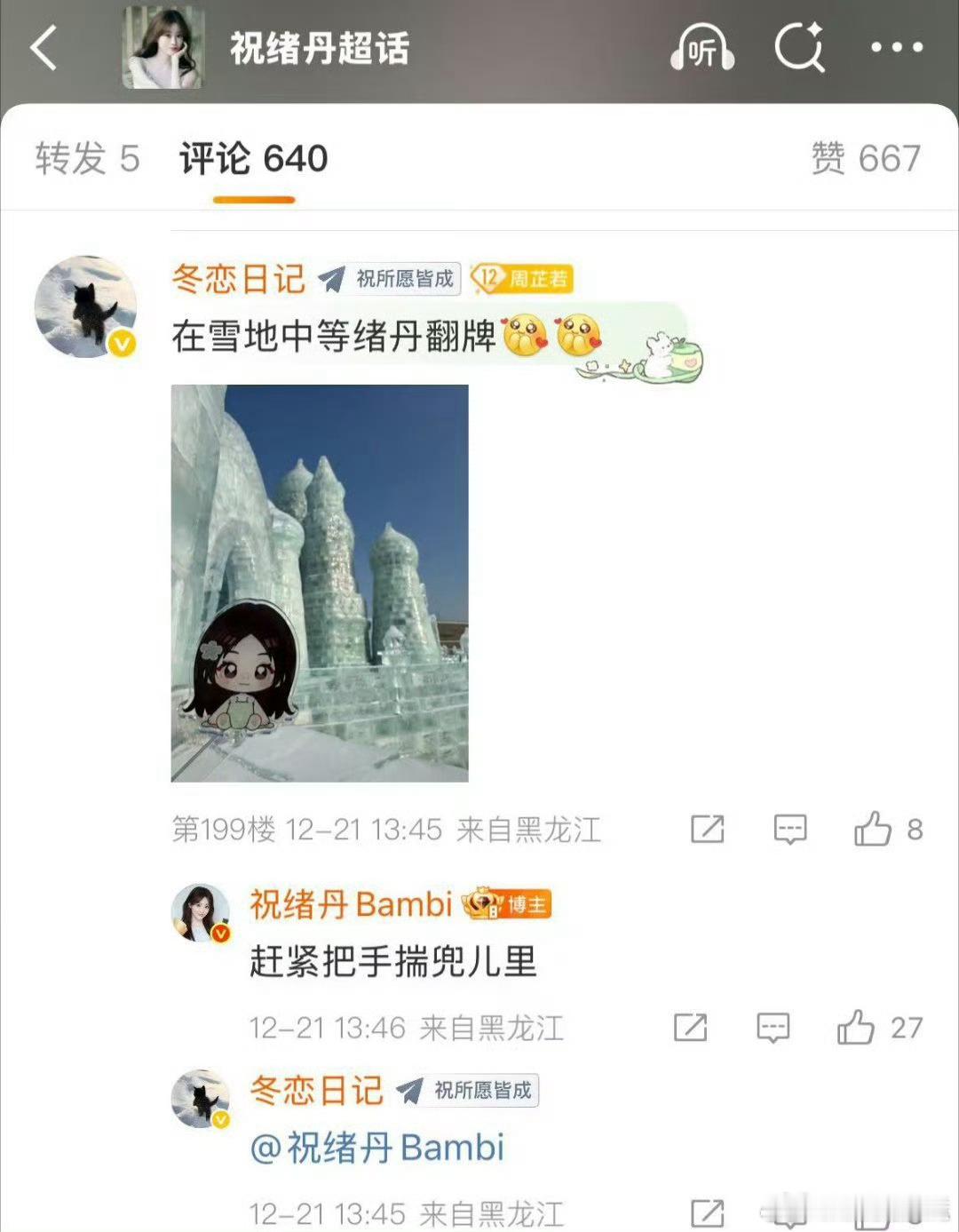 祝绪丹又文字直播了祝祝活人感好强好宠粉!又来给粉丝报备日常了,好乖的萌女,来冰雪大世界玩得开心!
