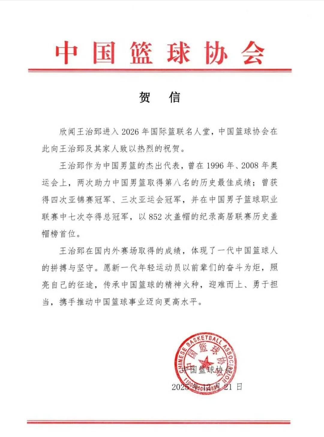 王治郅入选国际篮联篮球名人堂,篮协祝贺!恭喜王治郅,实至名归!