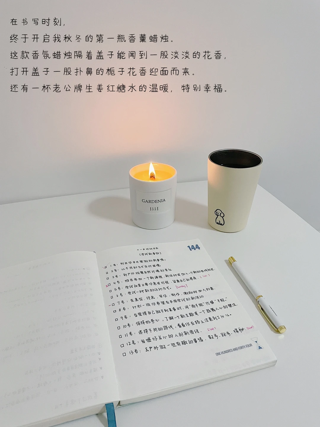 在书写时刻,终于开启我秋冬的第1⃣️瓶香薰蜡烛。这款香氛蜡烛隔着盖子能闻到一股淡淡的花香,打开盖子一股扑鼻的栀子花香迎面而来。