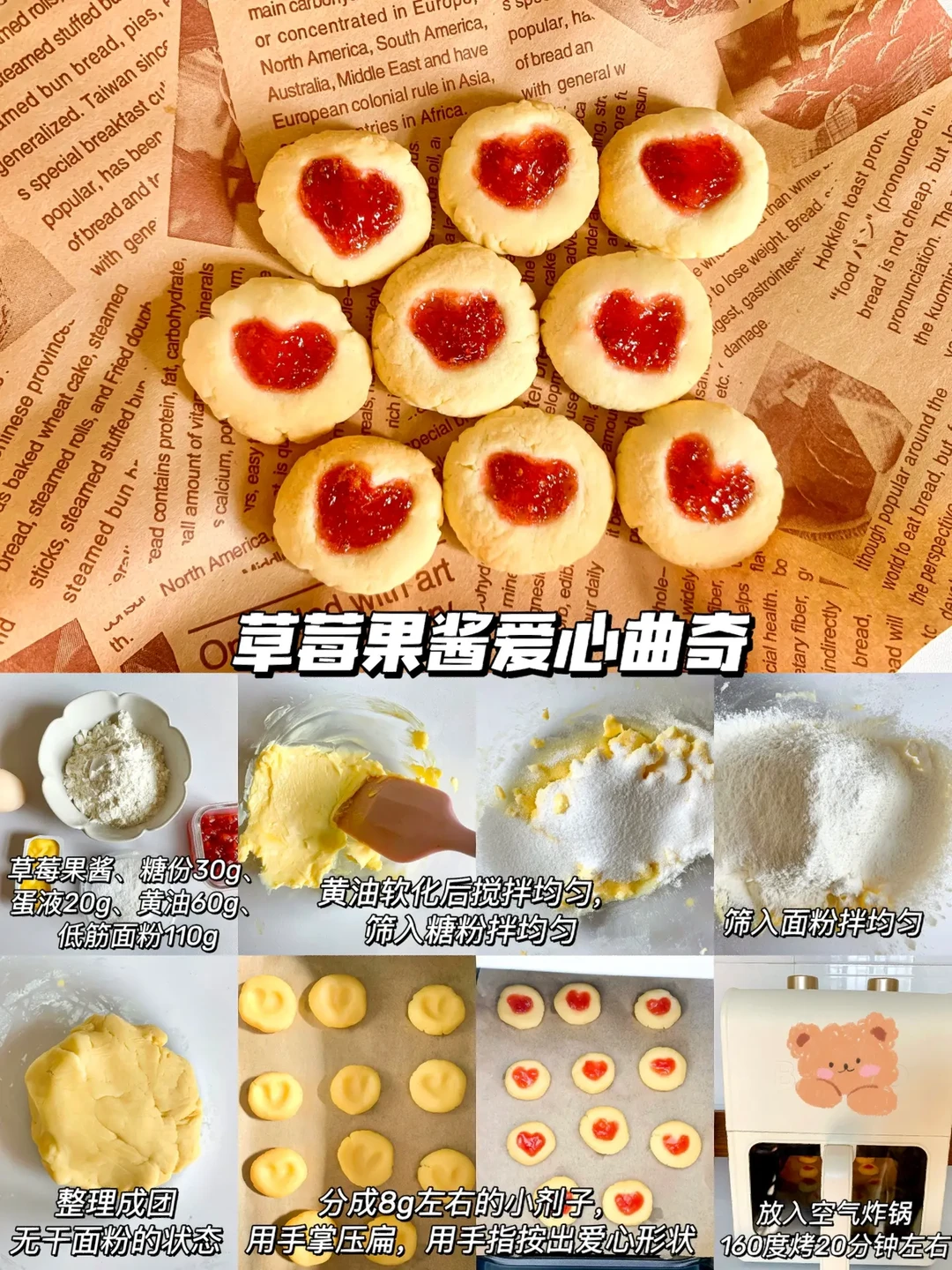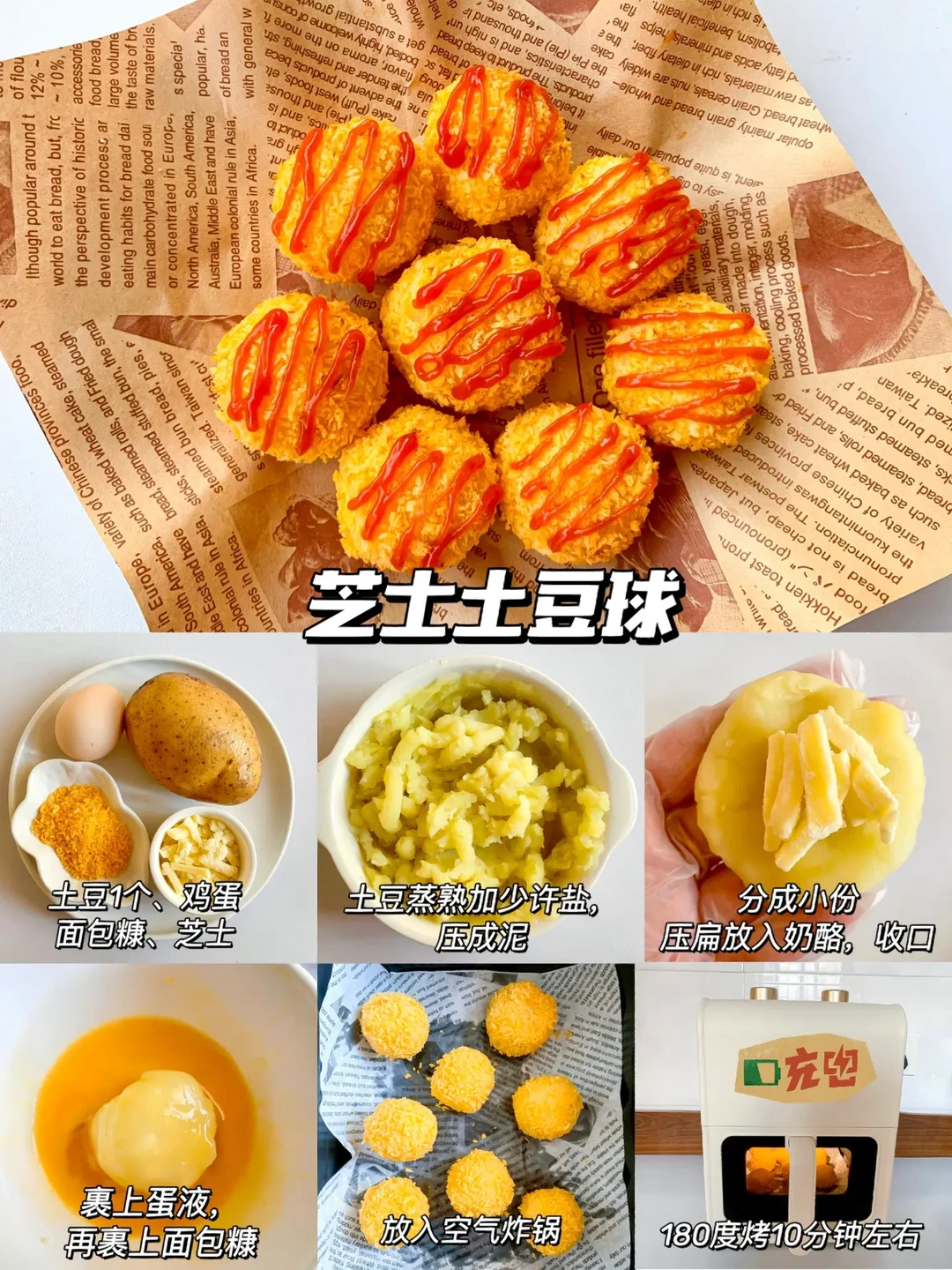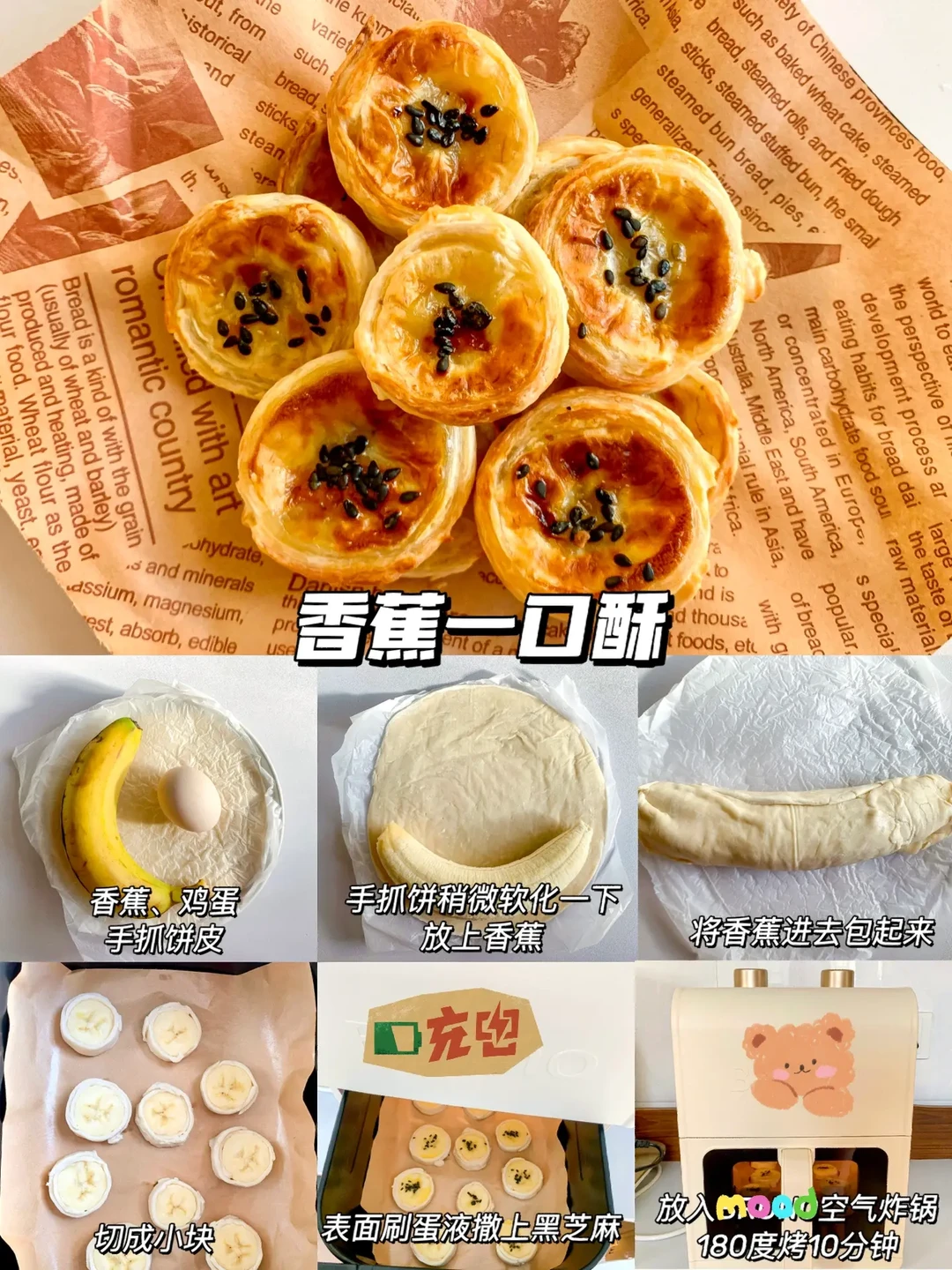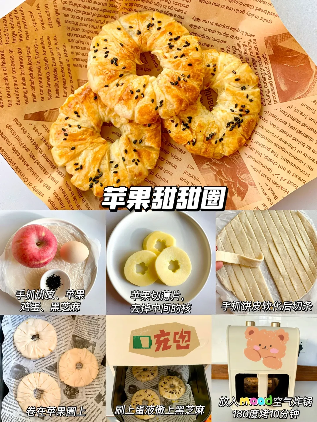 今天分享6款宝宝小零食的话作为小吃或宝宝下午茶都不错哦,非油炸更健康,快手简单0翻车,让宝宝也能拥有零食的快乐教程来啦! - ✅紫薯迷你可颂 ✅苹果甜甜圈 ✅香蕉一口酥 ✅芝士土豆球 ✅宝宝麦乐鸡块 ✅草莓果酱曲奇 - 由于空气炸锅脾气不同,时间和温度仅供参考,注意观察食物状态