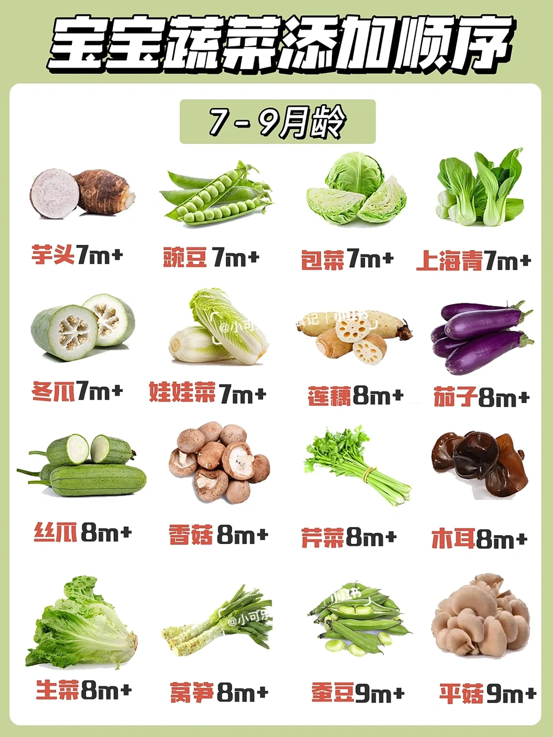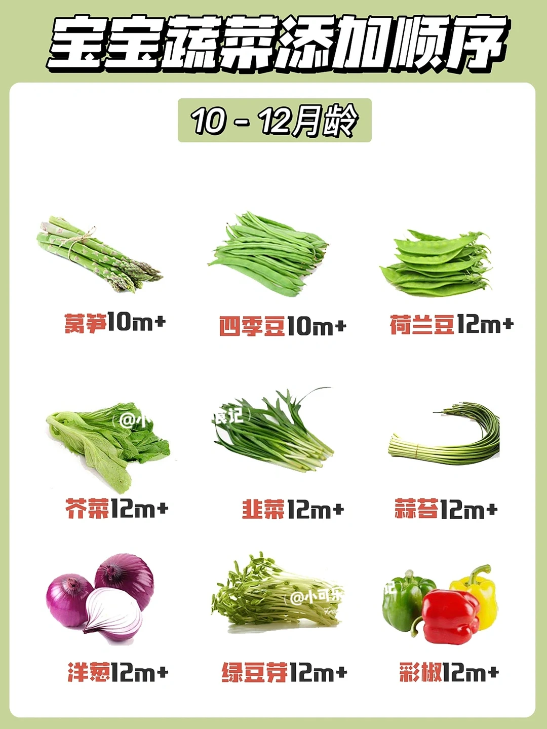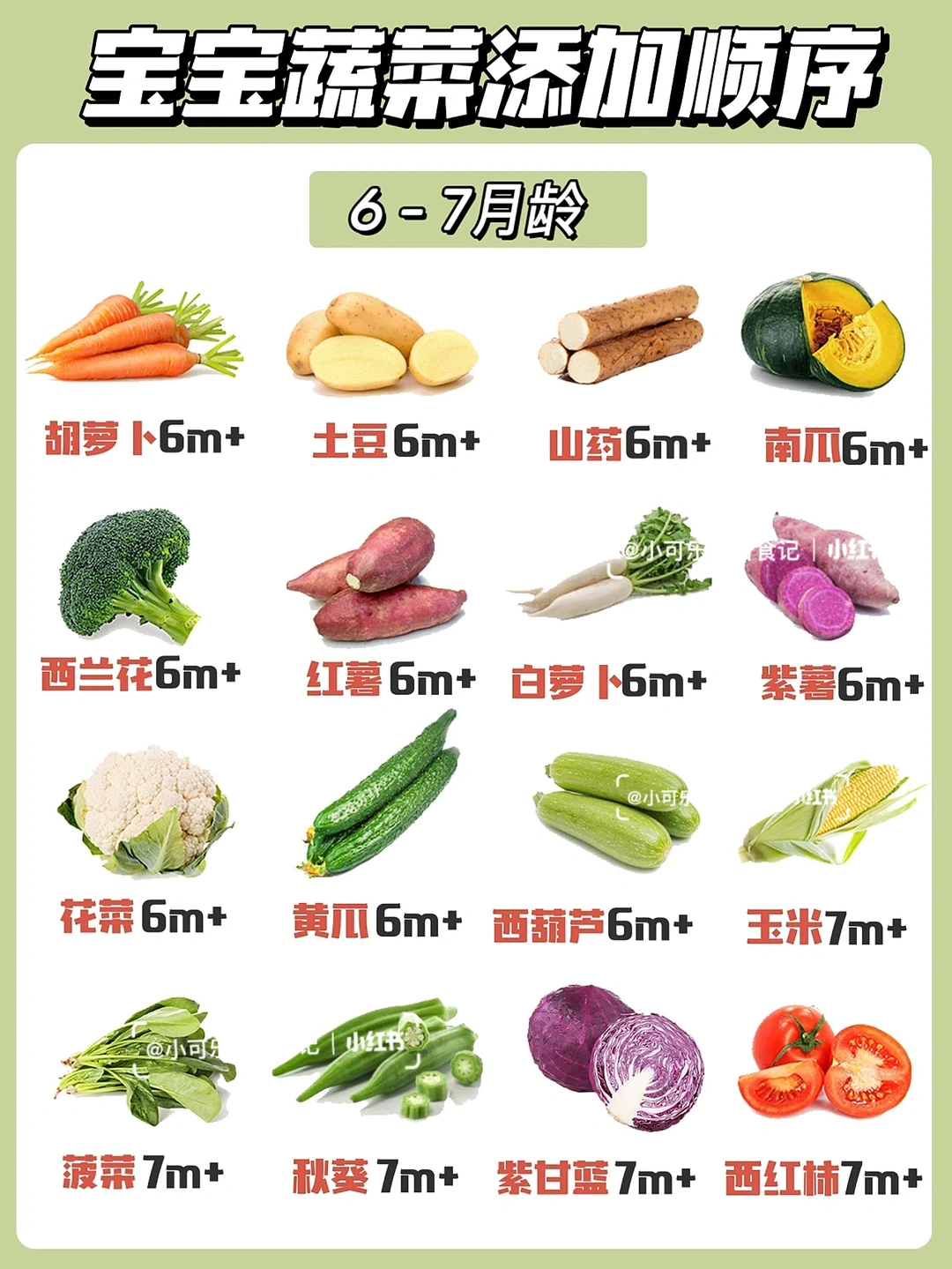 很多妈妈问蔬菜什么时候添加,今天整理了蔬菜添加顺序和辅食泥的做法,大部分常见蔬菜小月龄宝宝辅食可以食用的,希望可以帮到各位新手爸爸妈妈们~[害羞R][害羞R]