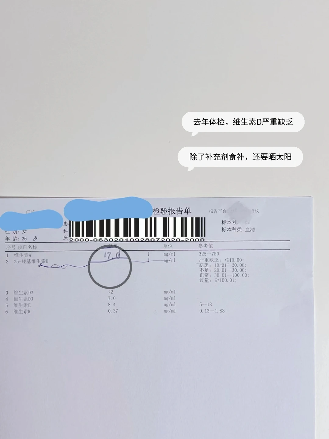 去年多次皮肤过敏,一次体检,维生素D为7ng/ml,属于严重缺乏。过度防晒之后才明白,要防也要适度晒。