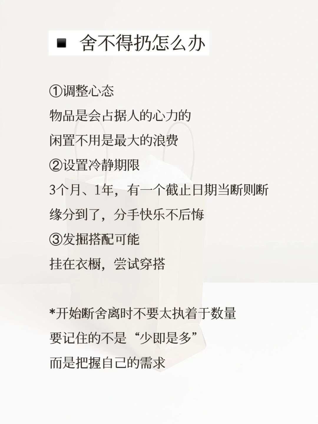 断舍离:转二手回本、送旧衣回收、赠给有需要的、改做他用、直接丢弃等等