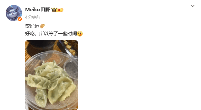 虎扑12月22日讯昨日冬至,Meiko晒饺子图: