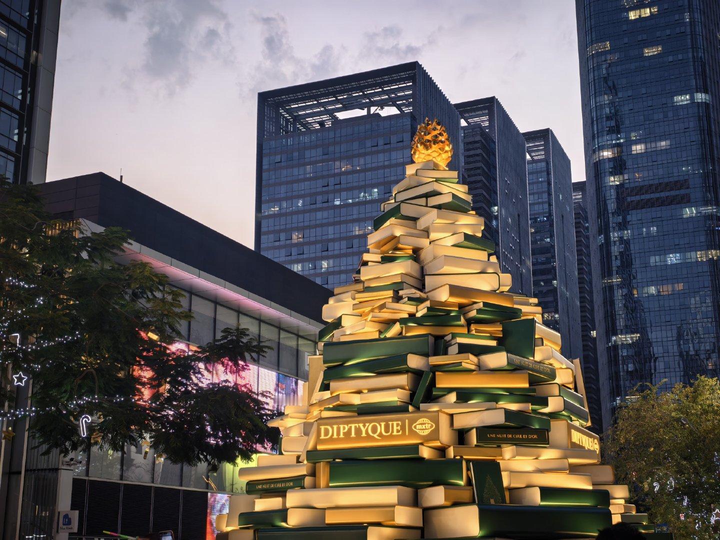万象天地整了个工作人员专门帮游客拍Diptyque书本圣诞树,还得是深圳