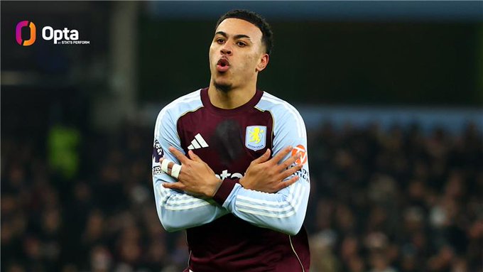 数据统计,摩根-罗杰斯成为自1998年11月的迪昂-都柏林(连续3场)以来,首位在英超连续两场都打进至少2球的阿斯顿维拉球员。